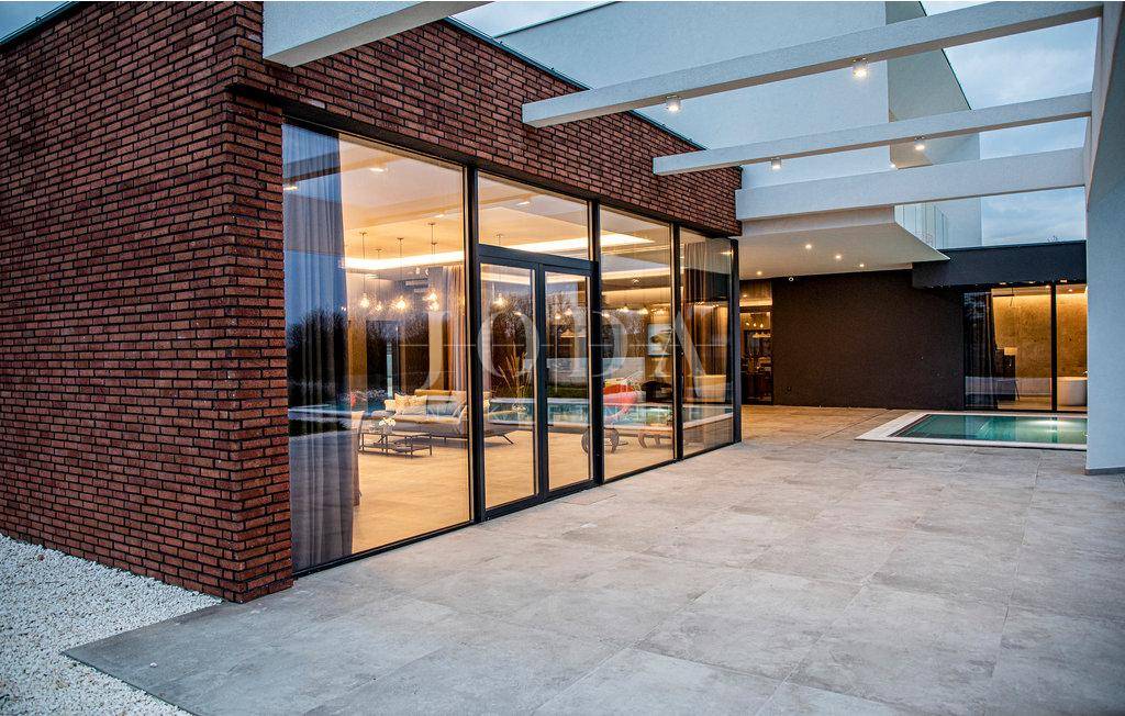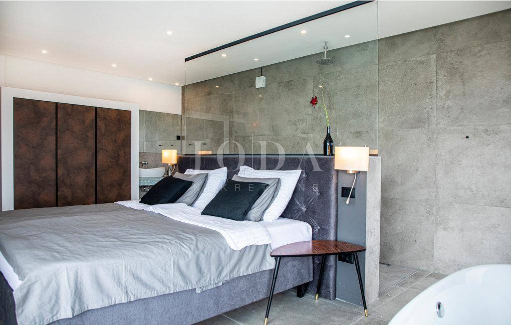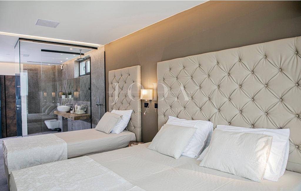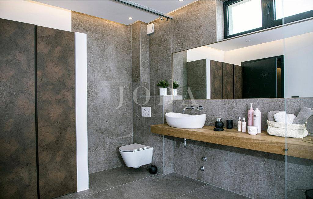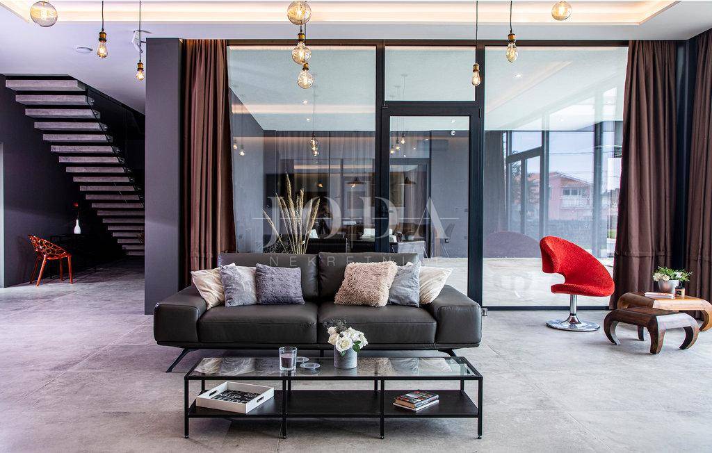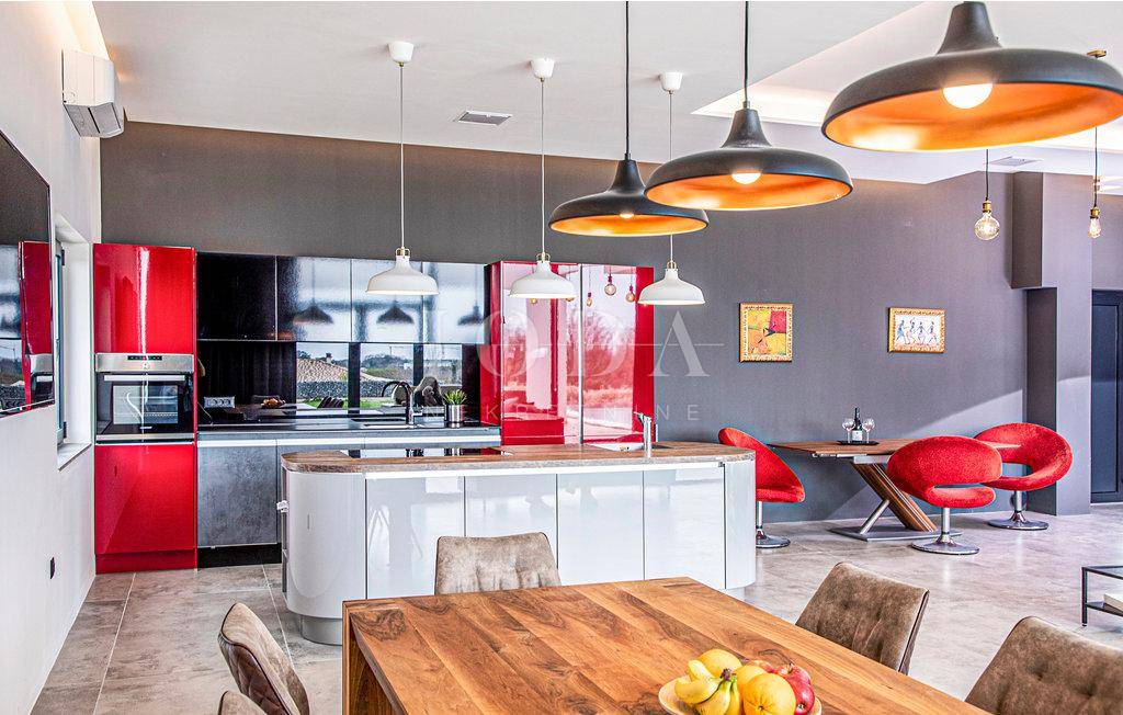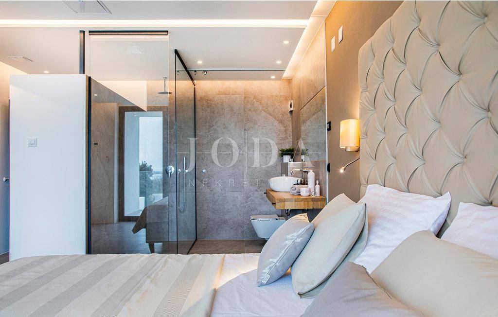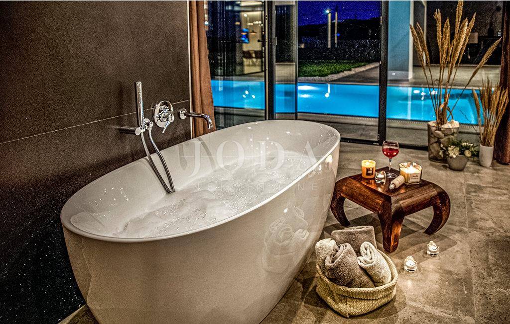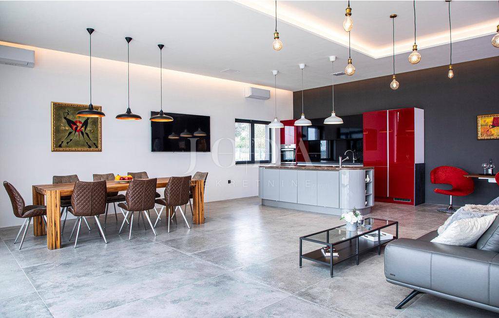Kuća je opremljena sustavom tzv.pametna kuća što znači da se upravlja pomoću mobilnih aplikacija,potpuno klimatizirana,solarni kolektori za toplu vodu,podno grijanje na dizalice topline,alarma sa video nadzorom.Interijer dizajnerski uređen sa visokokvalitetnim materijalima,rasvjeta,unutarnja stolarije sve upotpunjuje luksuz koja ova kuća pruža.