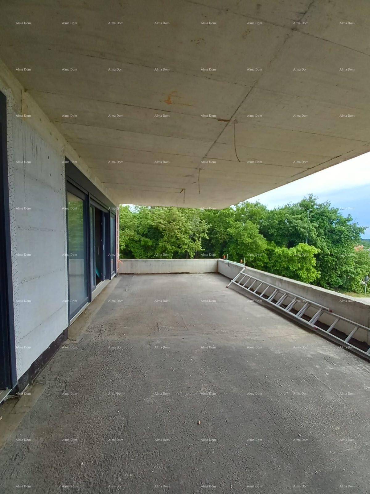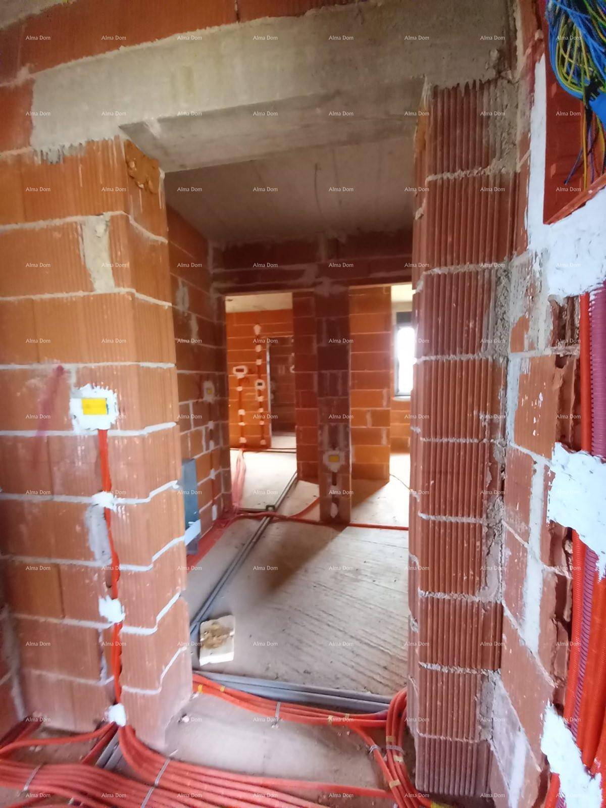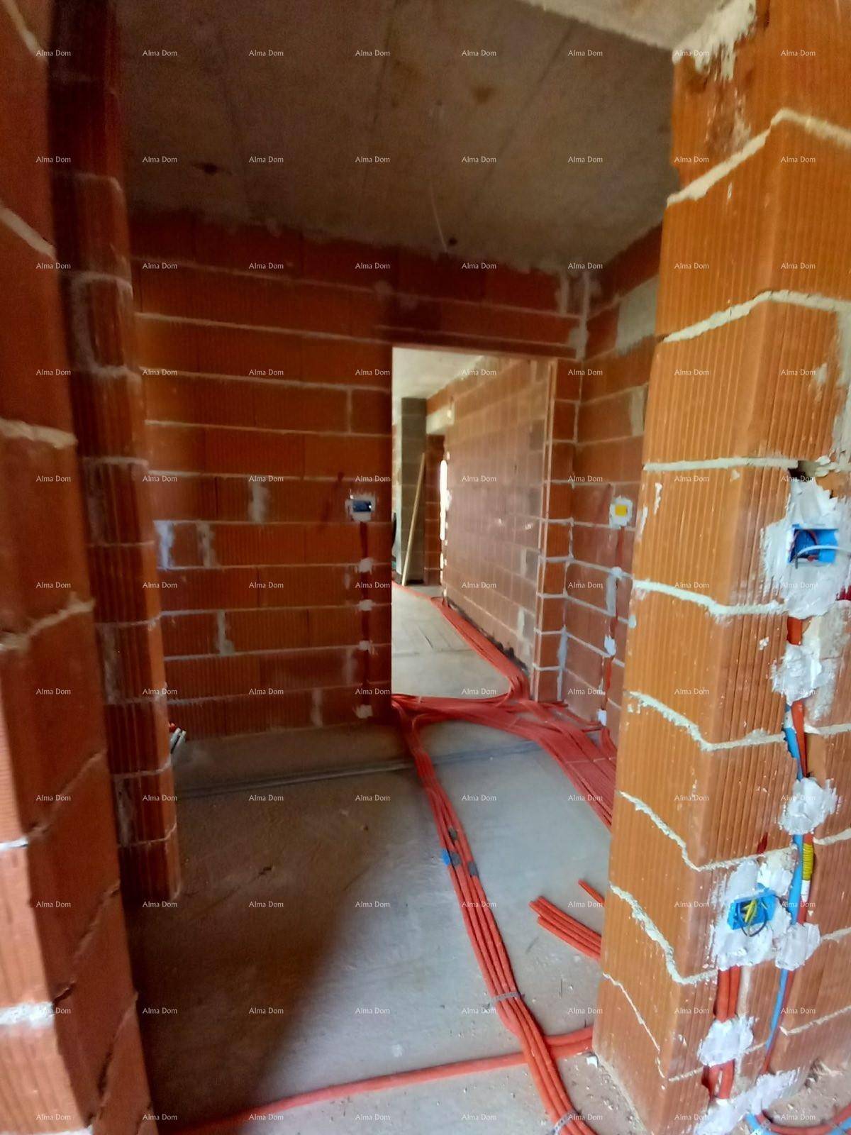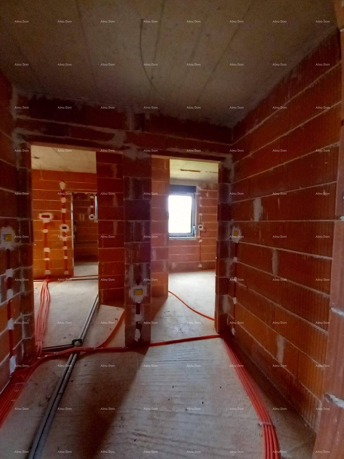 Stan će biti opremljen podnom grijanjem po cijelom stanu, klima uređajima u sobama, prozori su PVC visokokvalitetne troslojne s električnim ruletnama.