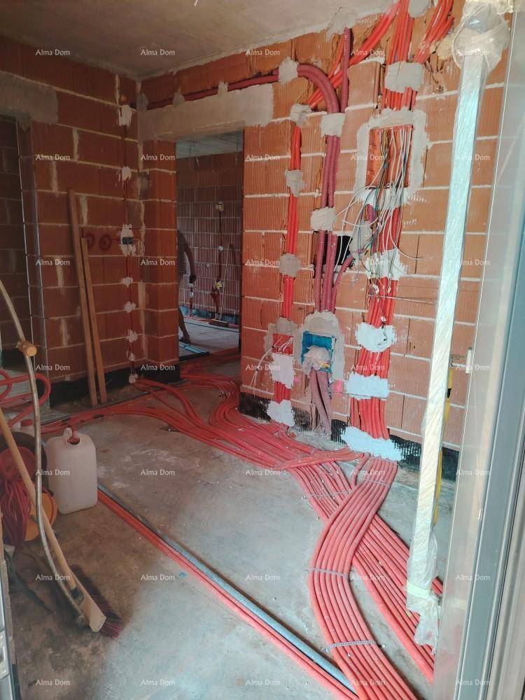 Stan će biti opremljen podnom grijanjem po cijelom stanu, klima uređajima u sobama, prozori su PVC visokokvalitetne troslojne s električnim ruletnama.
