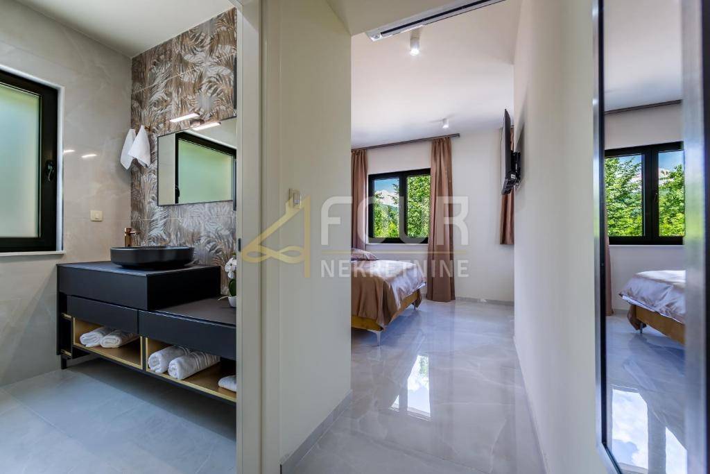 Na prvom katu smještene su tri prostrane spavaće sobe, svaka s vlastitom kupaonicom, dok drugi kat nudi dodatnu sobu i prekrasnu terasu, idealnu za opuštanje i uživanje u pogledu.