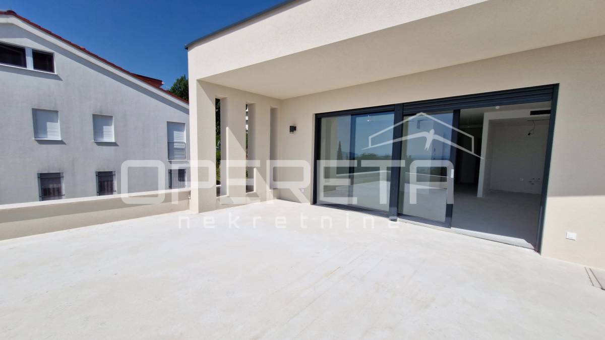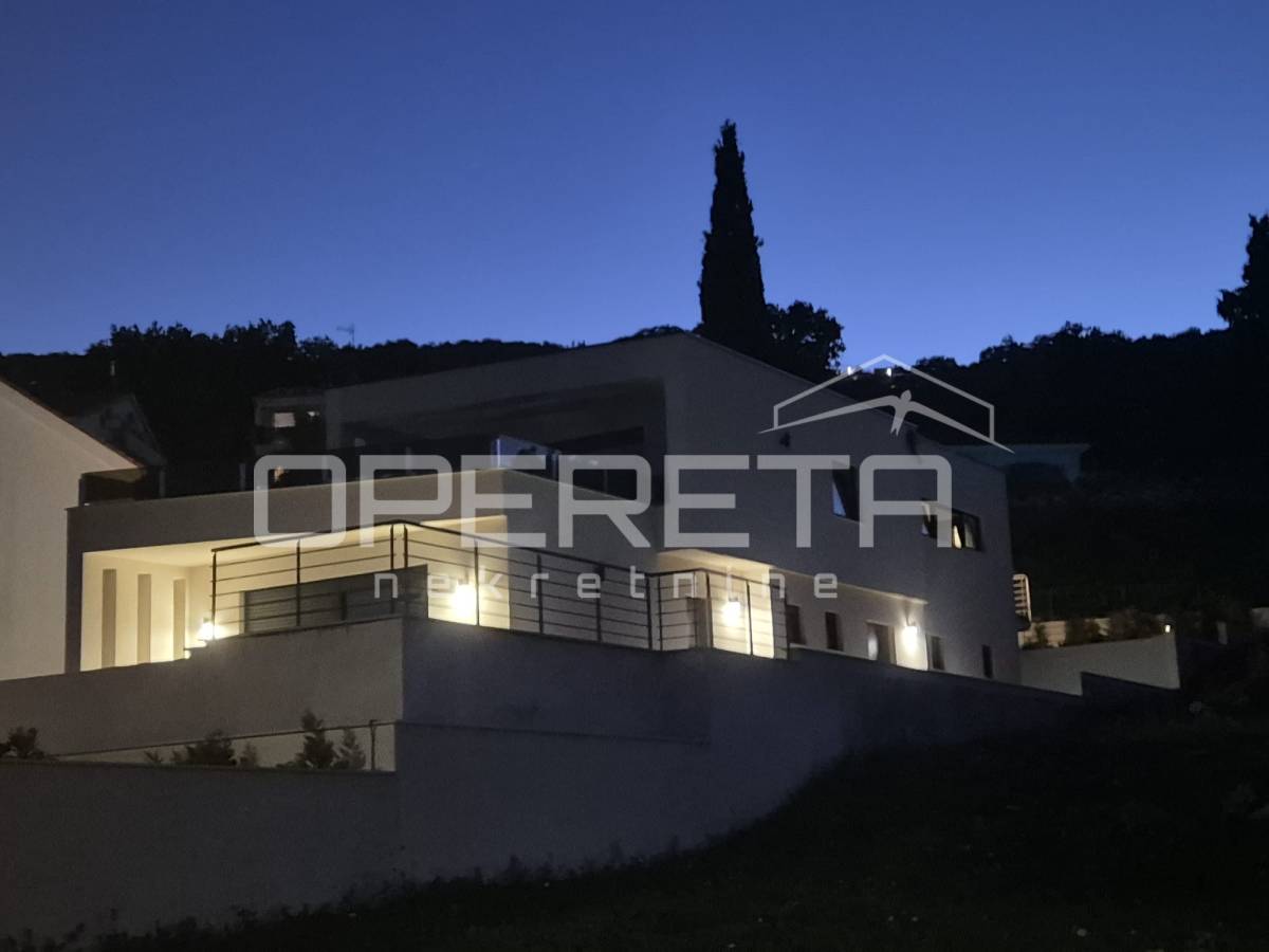 Prodaje se ekskluzivan stan (113 m²) u urbanoj vili s 2 jedinice, smješten u mirnoj ulici u centru Lovrana. Stan ima vlastitu terasu, bazen sa slanom vodom, sunčalište i pogled na more. Sastoji se od prostranog dnevnog boravka, 2 master spavaće sobe s vlastitim kupaonicama, kuhinje, blagovaonice te ostave (15 m²). Visoka roh-bau faza – mogućnost personalizacije interijera. Vrhunski sustav grijanja/hlađenja (toplinska pumpa), podno grijanje, privatni parking. Izvrsna lokacija – samo 300 m od mora i šetnice Lungomare.