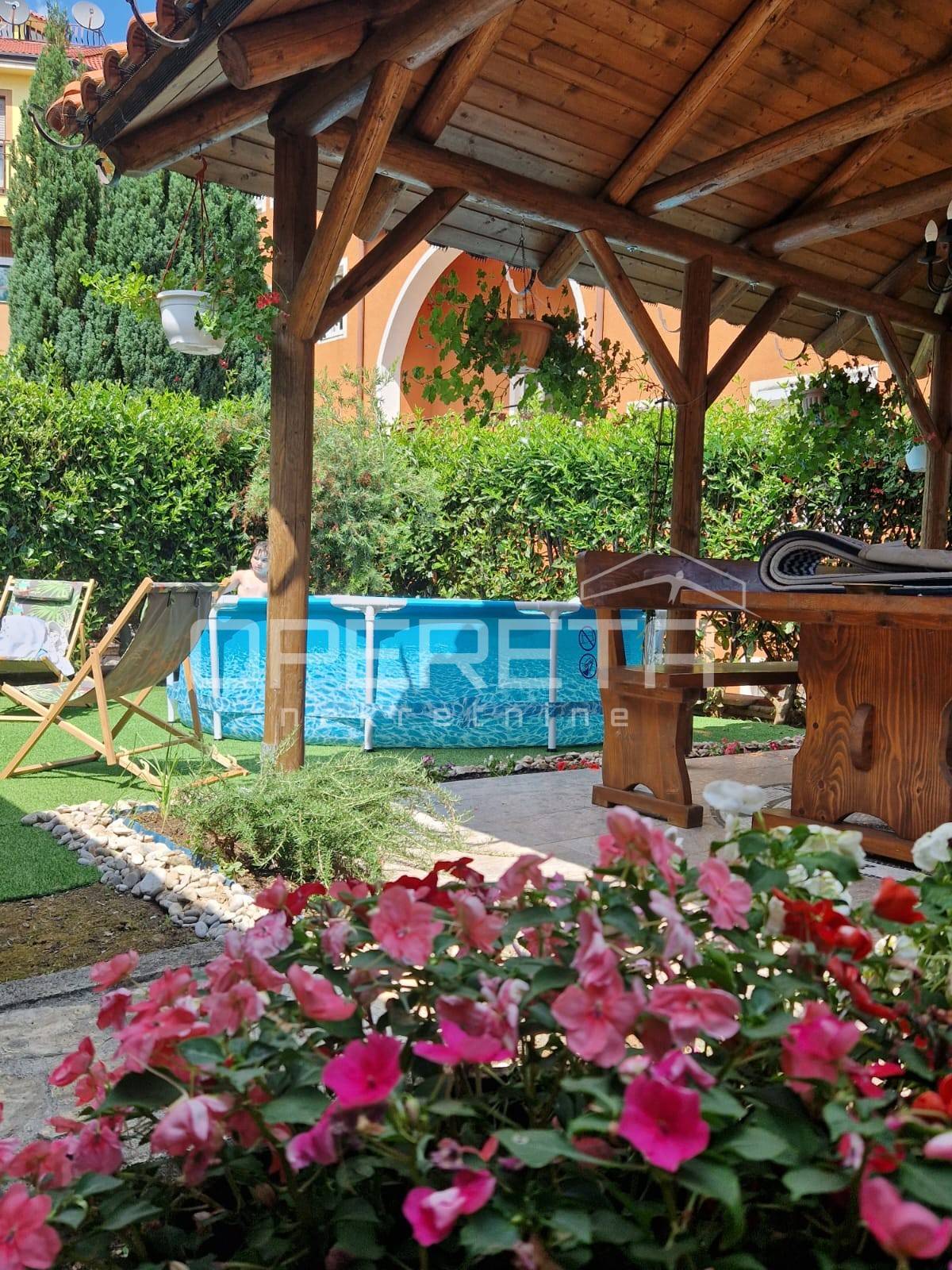 Posebna prednost ove nekretnine je pripadajući dio okućnice, uređen kao sunčalište i prostor za roštilj – savršeno mjesto za opuštanje i druženje na otvorenom uz uživanje u mediteranskom ambijentu.