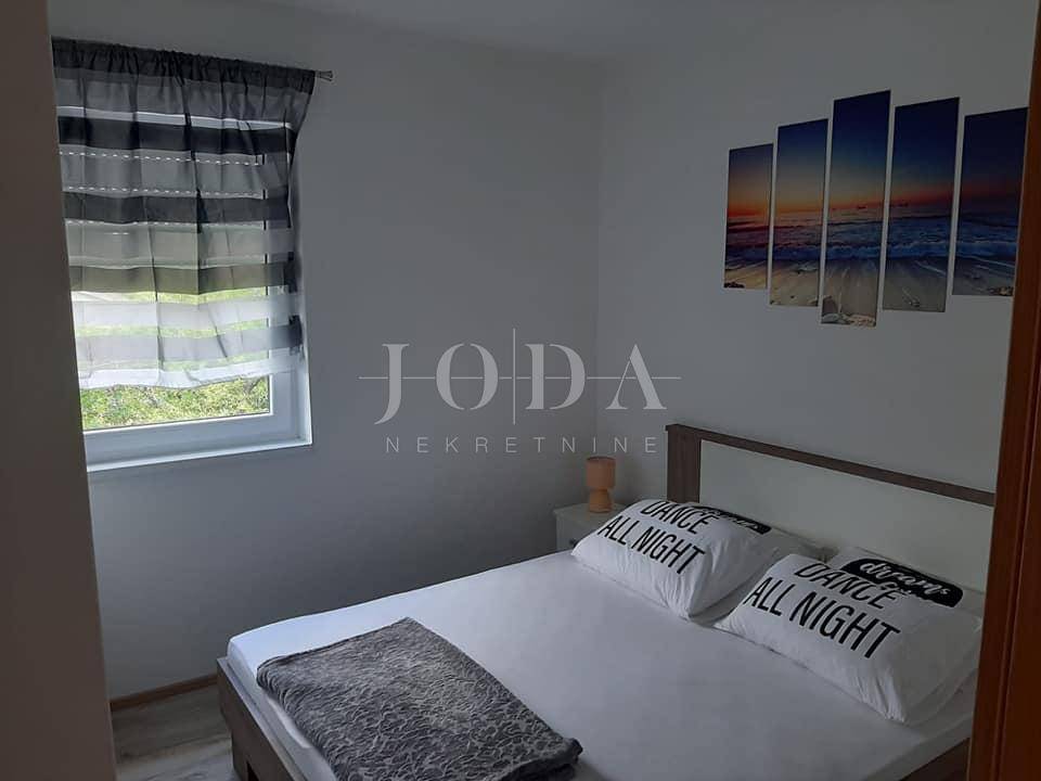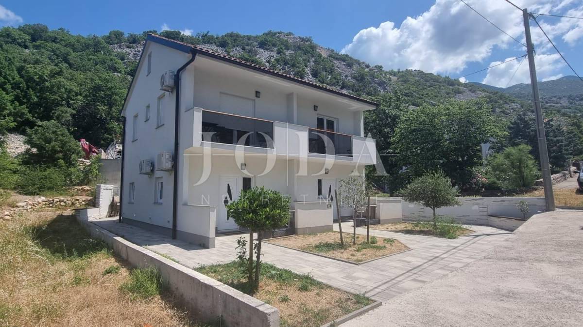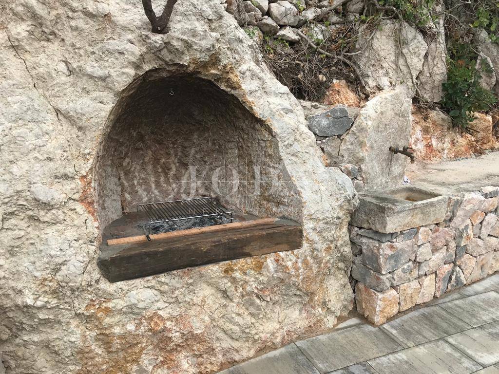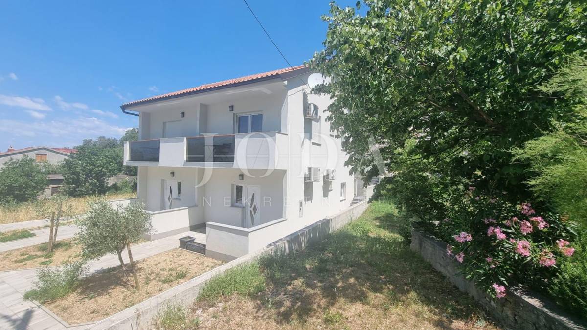 Samostojeća kuća sa 4 apartmana na 200 metara od prekrasne šljunčane plaže. Svi stanovi imaju zasebne ulaze i terrase dok se iza kuće na povišenom dijelu nalazi bazen sa sunčalištem i grillom. Potpuno namještena i novouređena kuća u funkciji turizma. Pogled na more sa kata i sa okućnice.