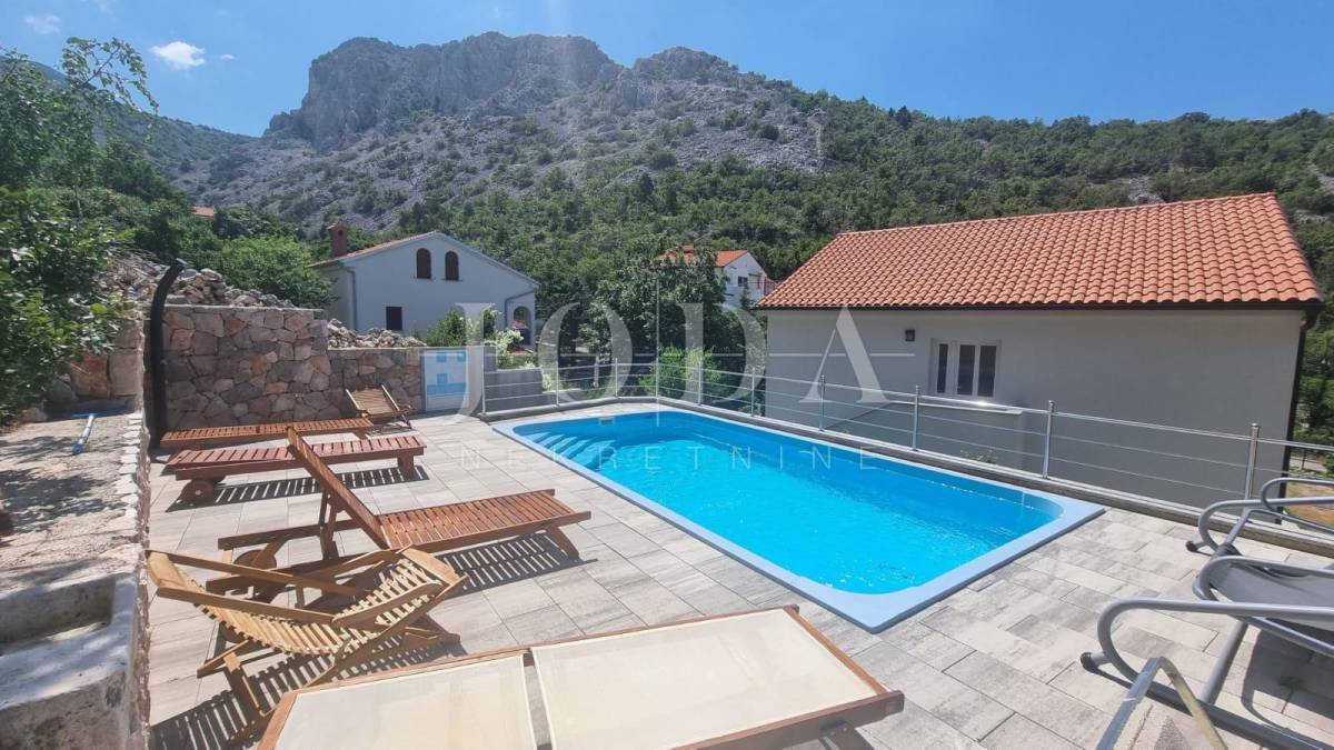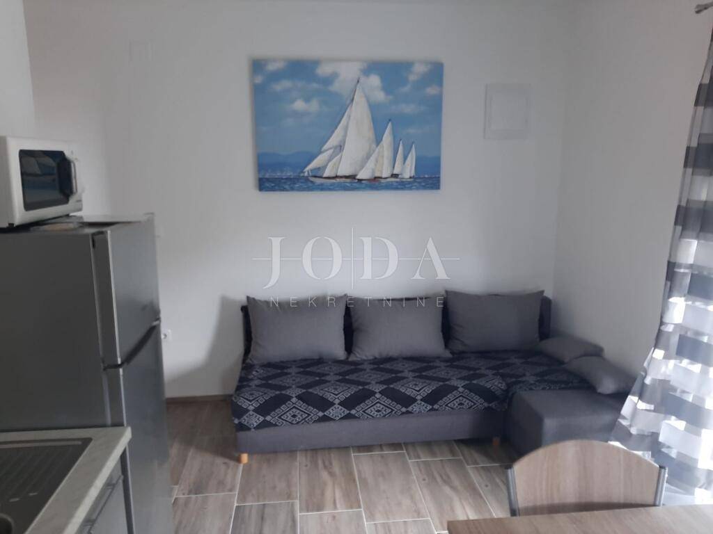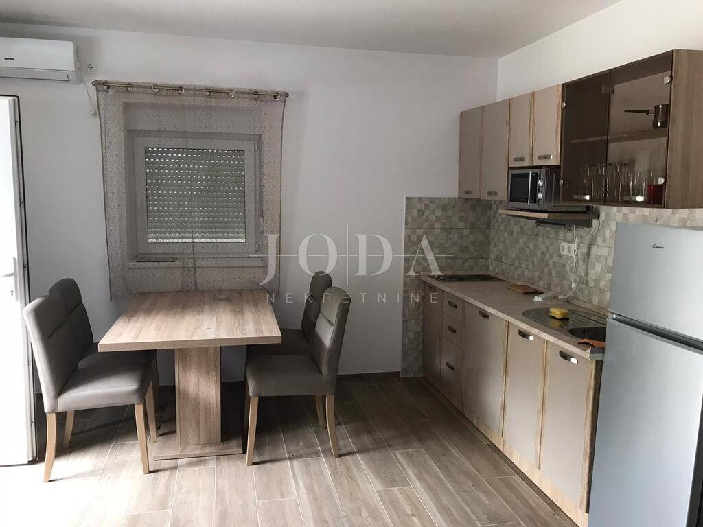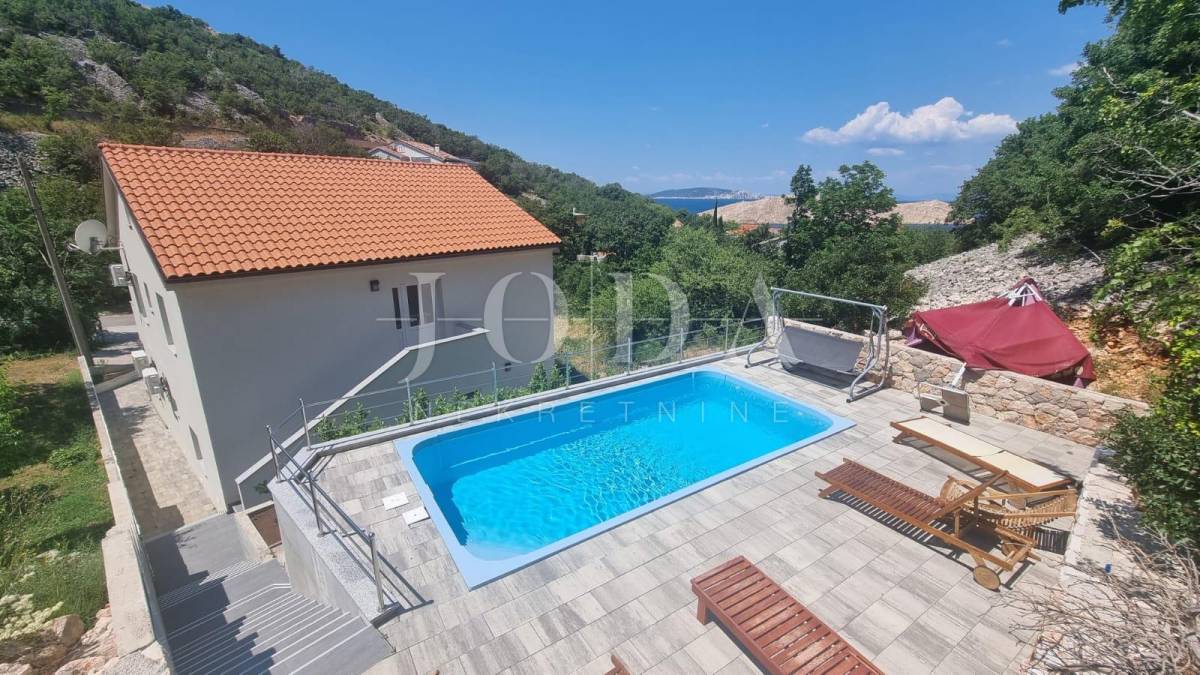 Samostojeća kuća sa 4 apartmana na 200 metara od prekrasne šljunčane plaže. Svi stanovi imaju zasebne ulaze i terrase dok se iza kuće na povišenom dijelu nalazi bazen sa sunčalištem i grillom. Potpuno namještena i novouređena kuća u funkciji turizma. Pogled na more sa kata i sa okućnice.