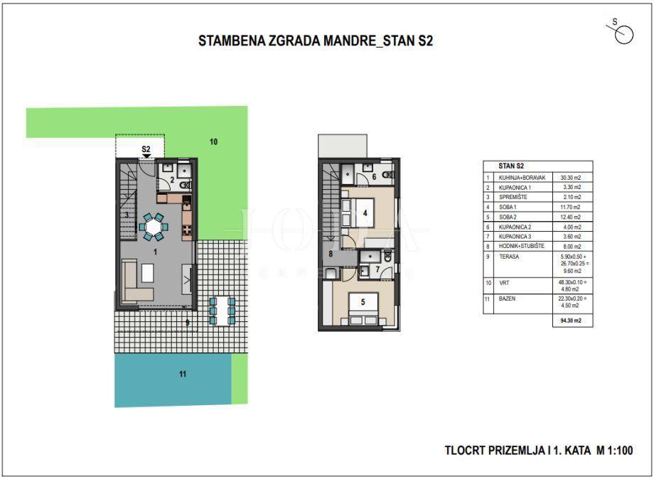 U ponudi je luksuzni dvoetažni apartman s privatnim bazenom, vrtom i privatnim ulazom, smješten u mirnom dijelu Mandri na otoku Pagu. Projekt od samo dvije moderne zgrade s ukupno 5 luksuznih jedinica, čime se jamči ekskluzivnost, intima i visoki životni standard.