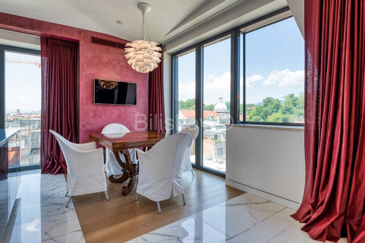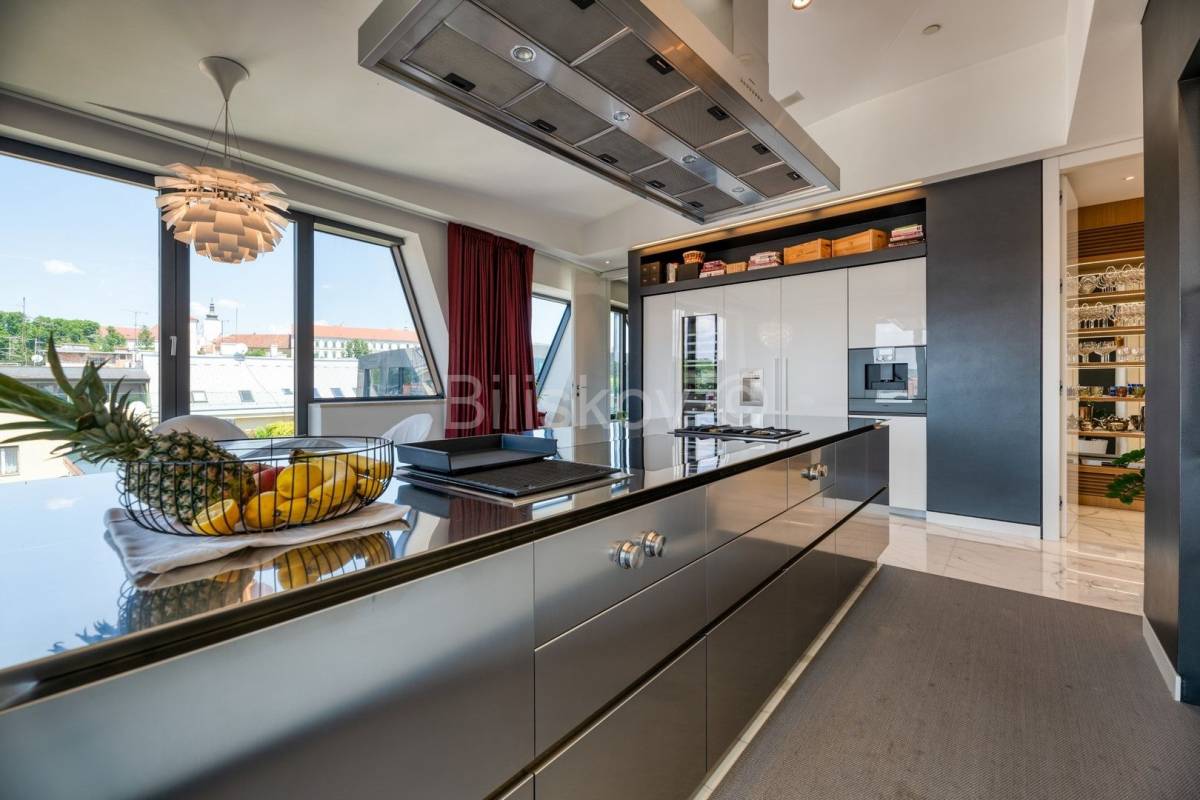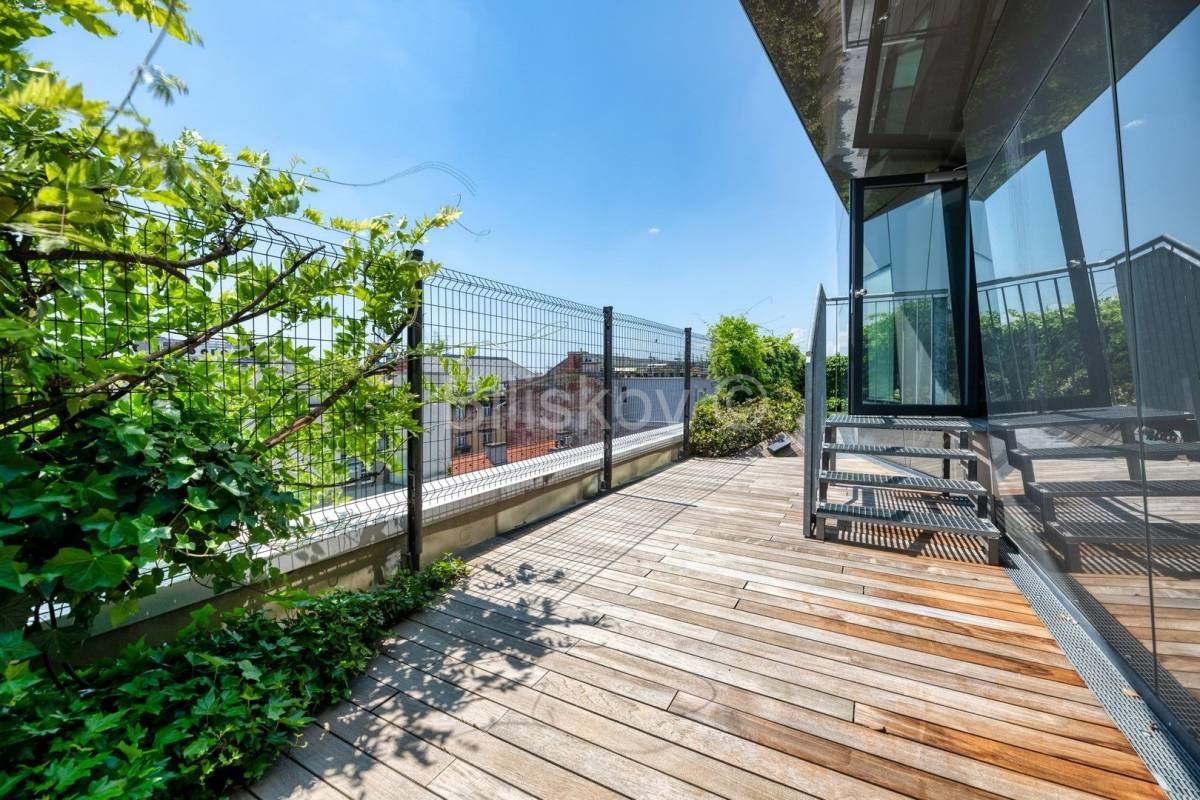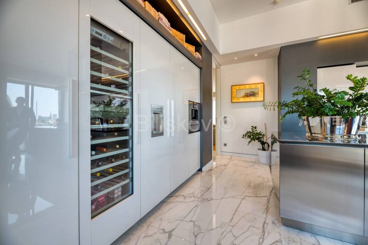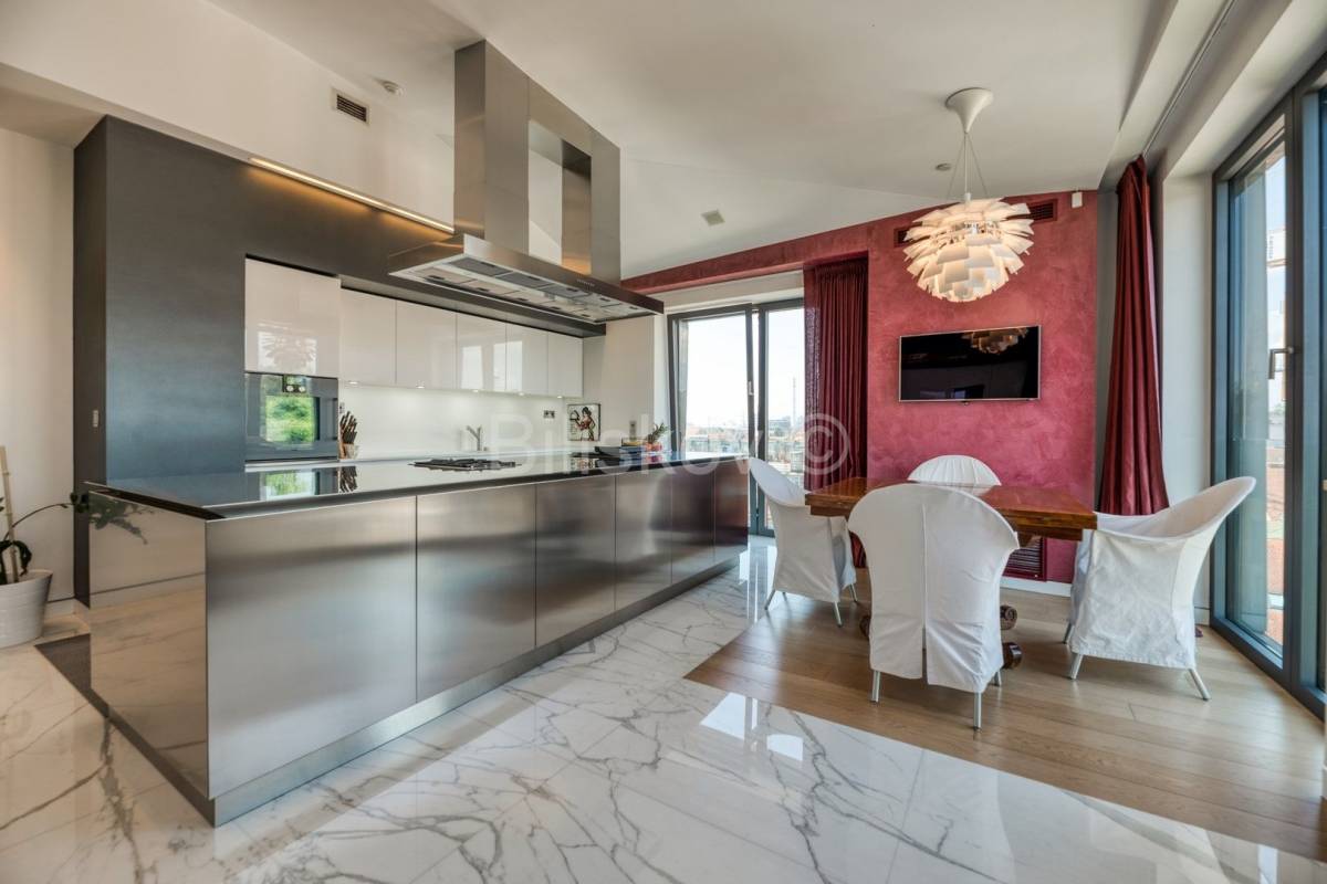 Luksuzno uređen predivan četverosoban dvoetažni penthouse ukupne površine 440 m2 NKP koji se proteže na šestom i sedmom katu zgrade sagrađene 2012. godine. Stan ima privatno dizalo.