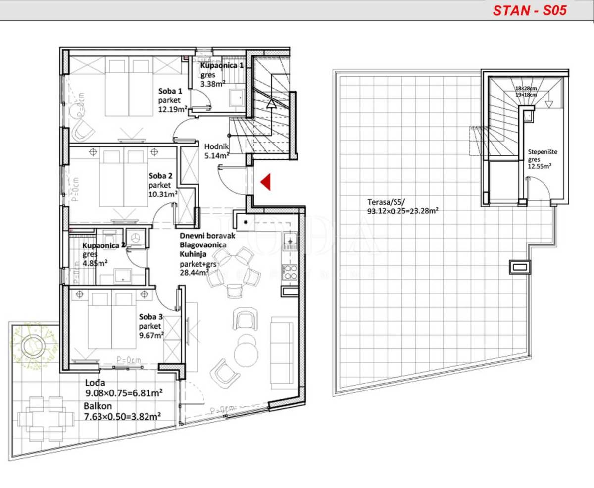Bruto površina stana iznosi čak 209, 89m2 dok je neto površina 123,14m2.