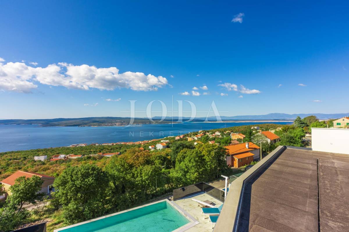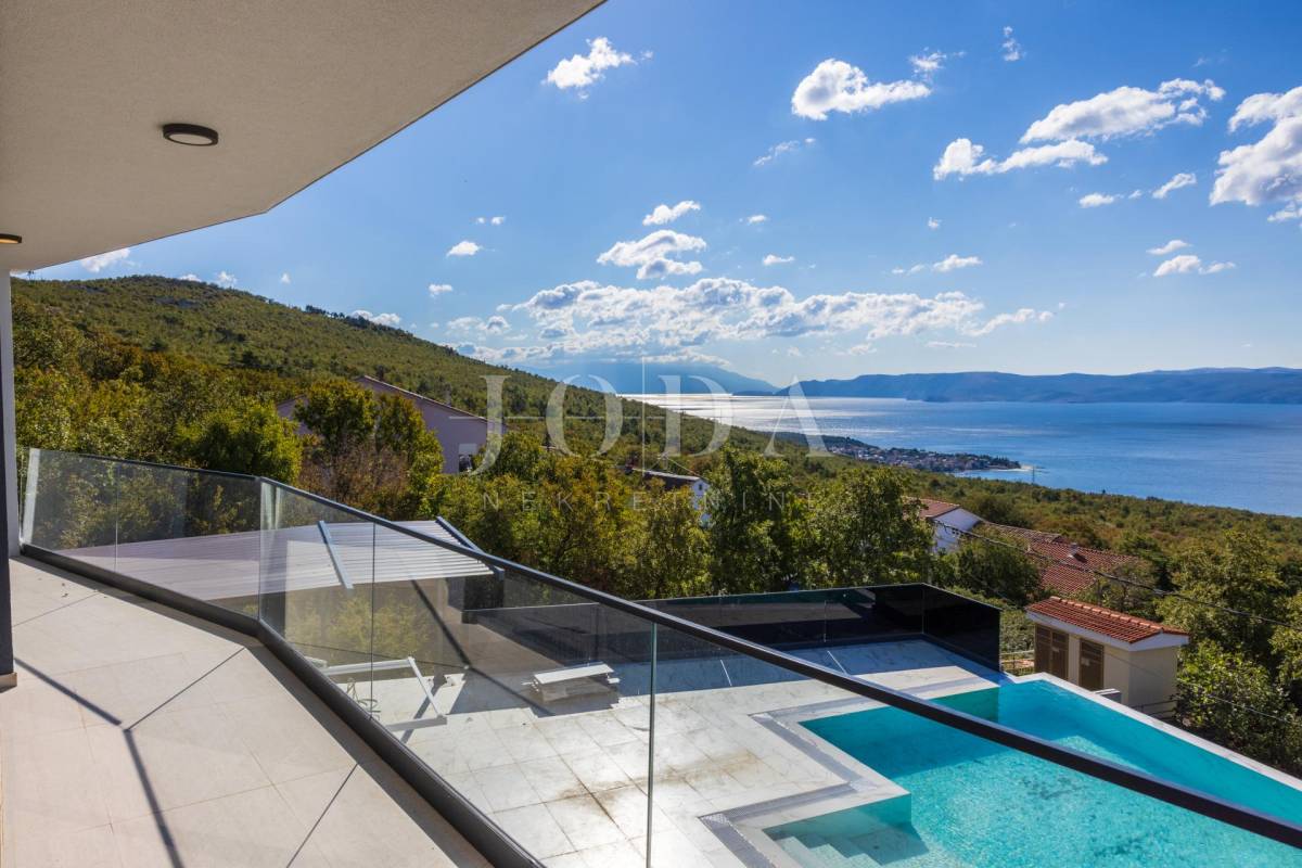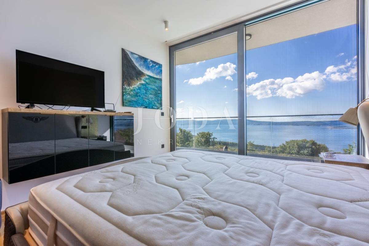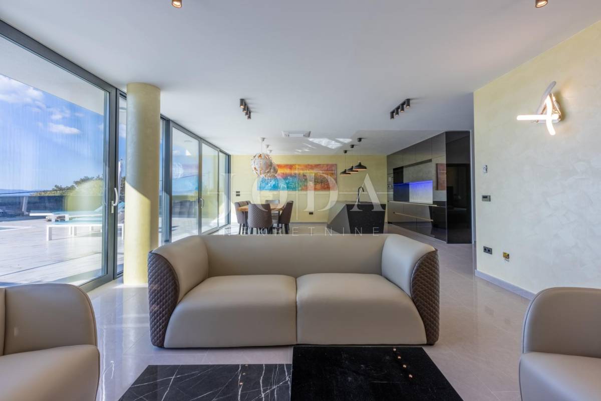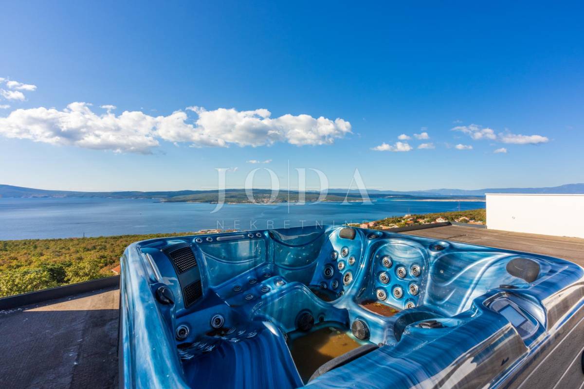 Stubište vodi na kat gdje su smještene tri spavaće sobe svaka sa vlastitom kupaonicom i balkonima,dok je na zadnjoj etaži krovna terasa sa sunčalištem i jacuzzijem.