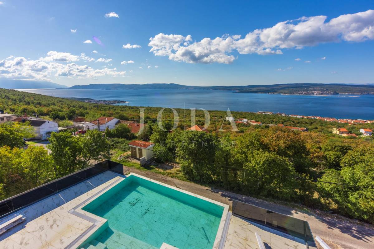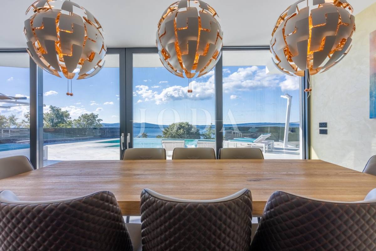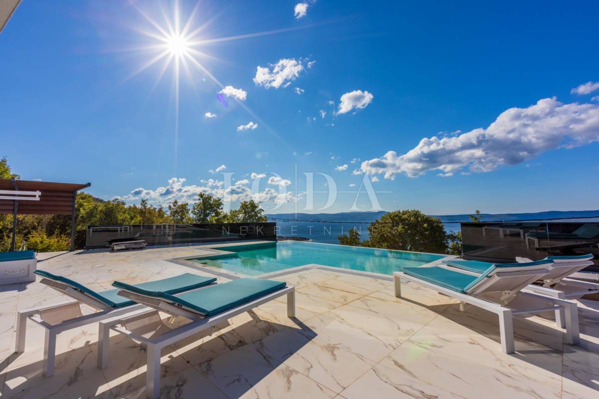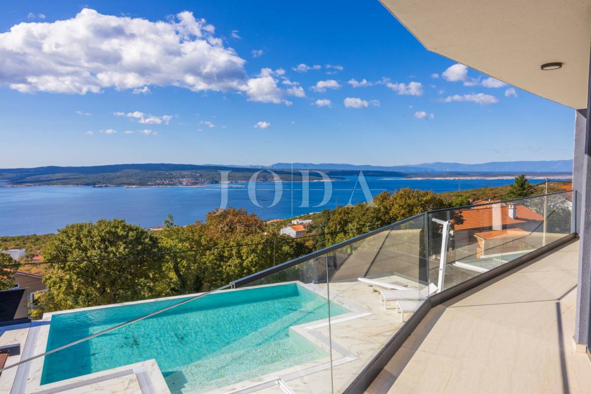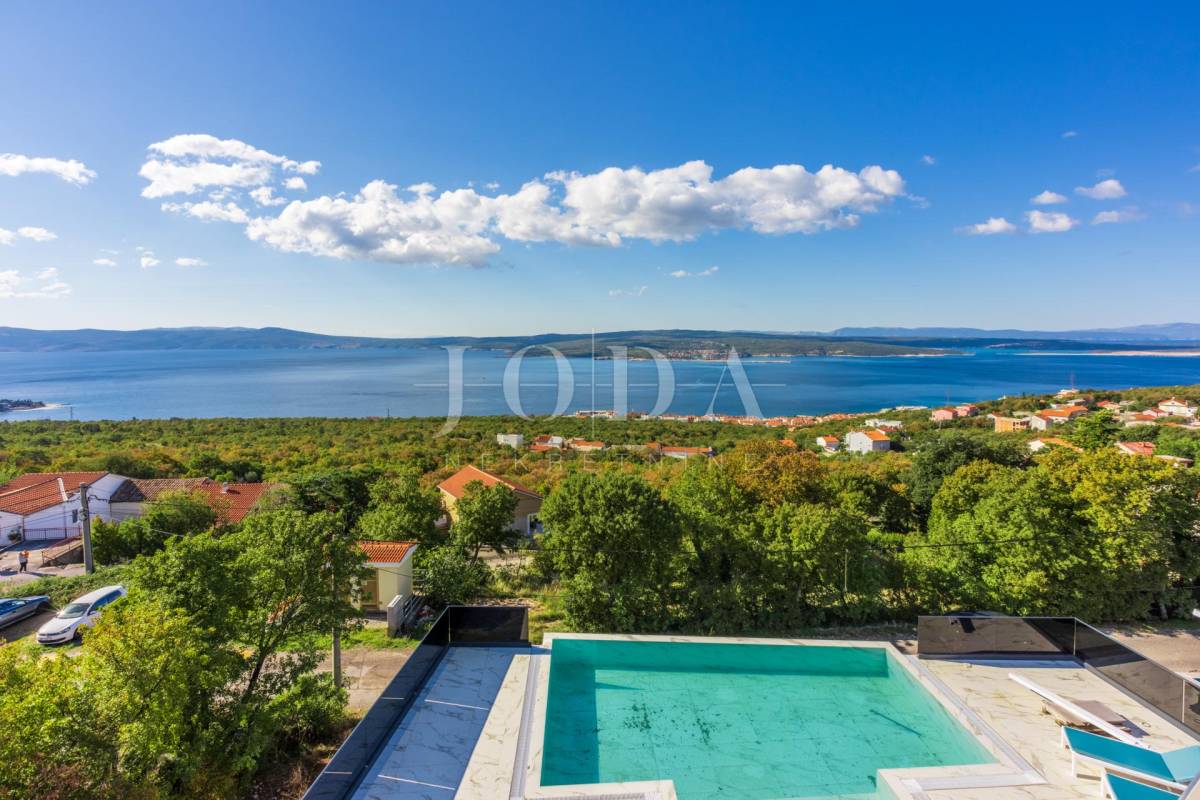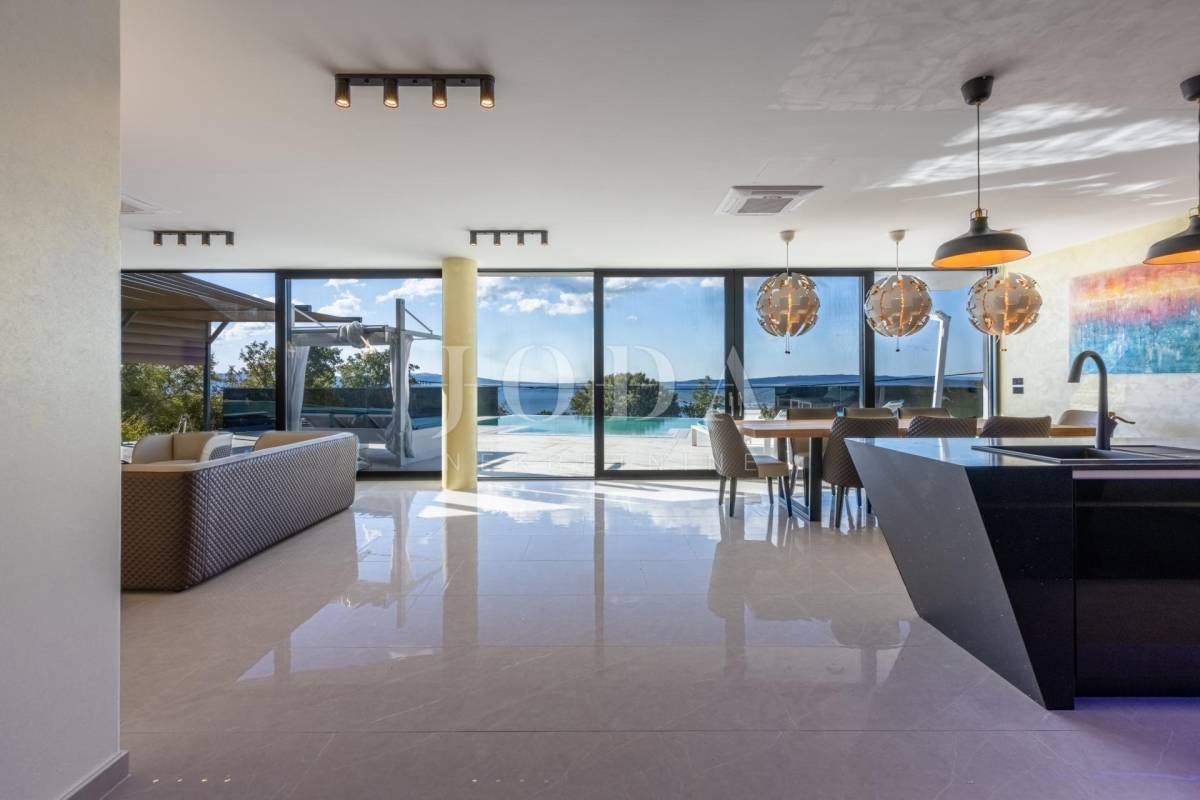 Stubište vodi na kat gdje su smještene tri spavaće sobe svaka sa vlastitom kupaonicom i balkonima,dok je na zadnjoj etaži krovna terasa sa sunčalištem i jacuzzijem.