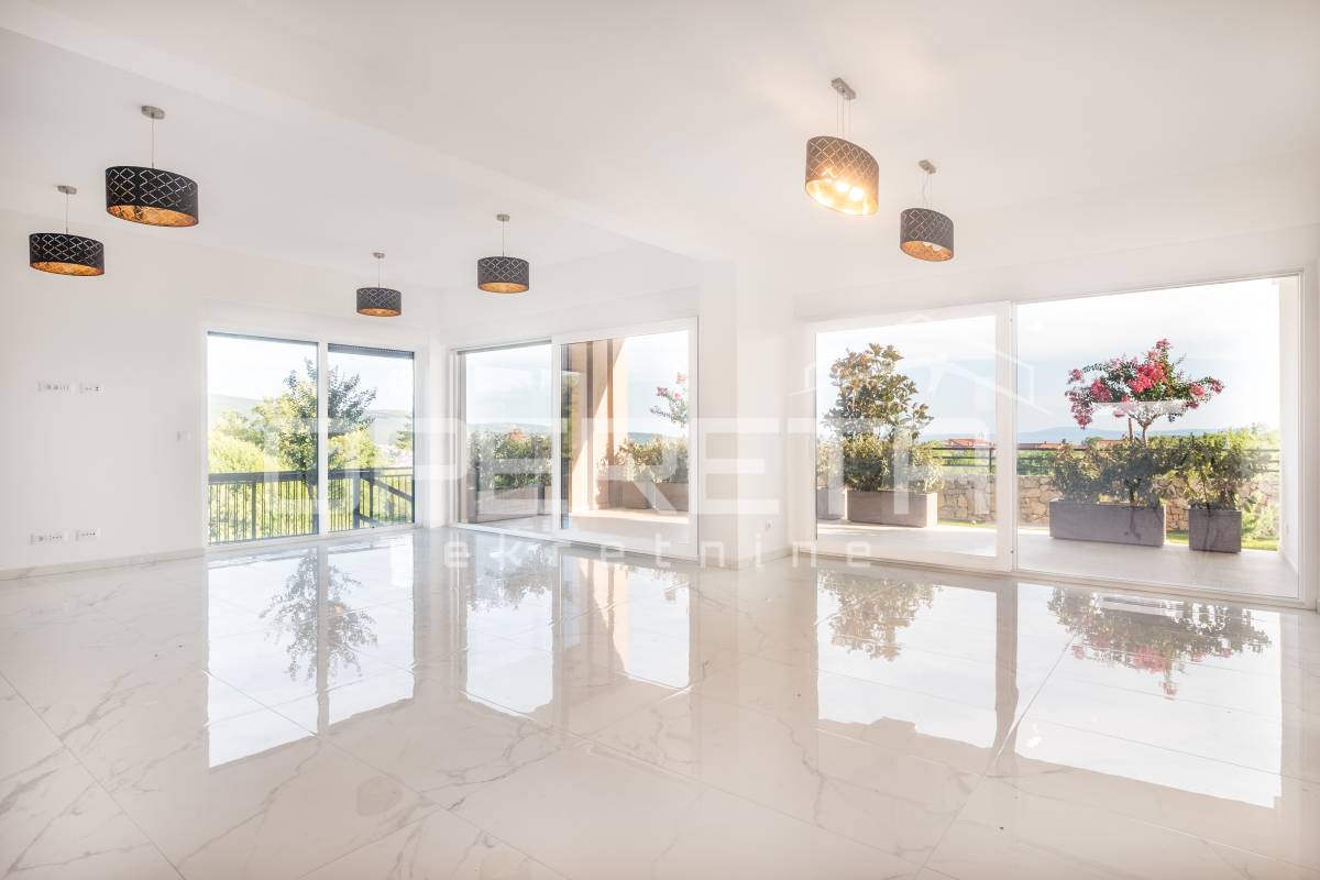 Ova moderna kuća se nalazi na mirnoj I traženoj lokaciji, u blizini jednog od najatraktivnijeg mjesta na otoku Krku.