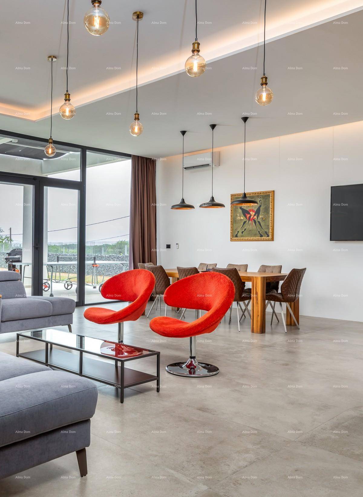 Ližnjan, slikovito mjesto na jadranskoj obali, poznato po kilometarskim netaknutim plažama, sve se više razvija u poželjnu turističku destinaciju. U srcu ovog predivnog mjesta, blizu Marlere i novog luksuznog hotela, smjestila se moderna samostojeća vila koja svojim dizajnom i sadržajima privlači ljubitelje elegancije i komfora.