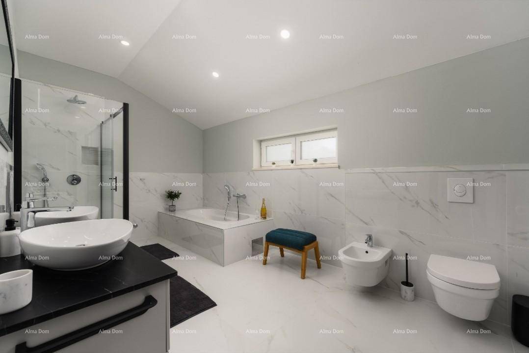 Na prodaju je luksuzna, potpuno namještena vila s bazenom i pogledom na more, dovršena 2023. godine te građena prema najvišim europskim standardima. Smještena je na mirnoj lokaciji, na parceli od 718 m², okružena uređenim mediteranskim vrtom i potpunom privatnošću. Stambena površina iznosi 186 m², a vila je kategorizirana za turističko iznajmljivanje i spremna za trenutačno useljenje.