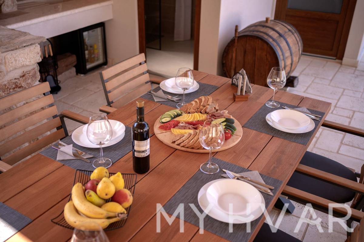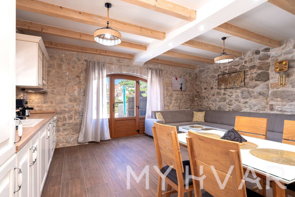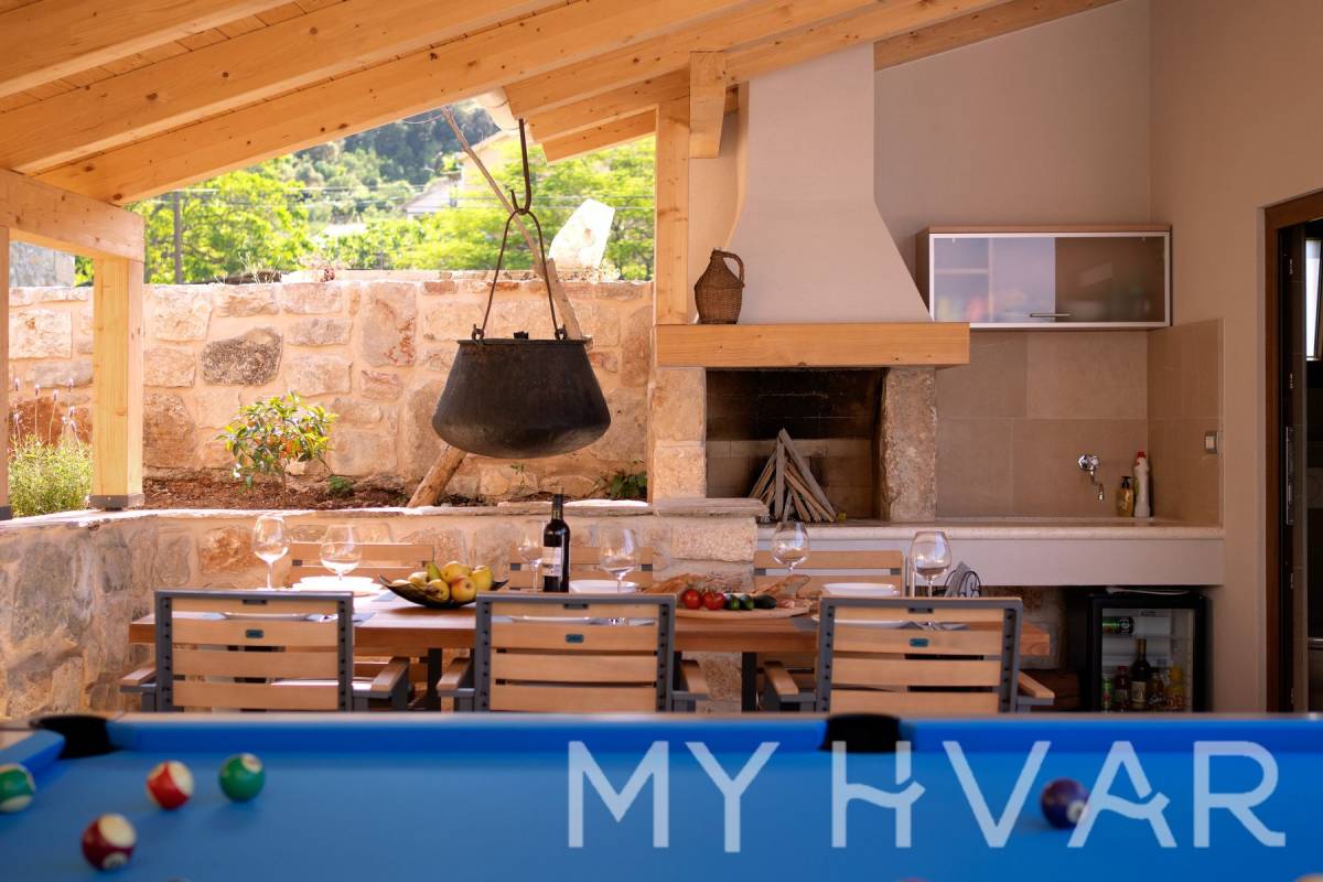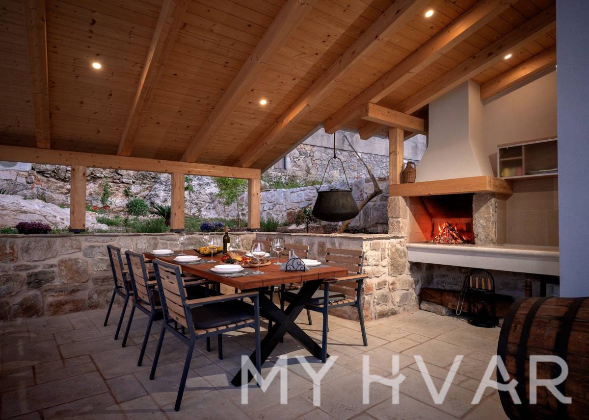 Smještena u slikovitom selu Dol na otoku Hvaru, ova nedavno renovirana vila nudi savršen spoj modernog komfora i tradicionalnog dalmatinskog šarma. Na prostranoj parceli od 435 m², vila se prostire na dvije etaže i sadrži 6 soba, uključujući 3 spavaće sobe i 2 kupaonice, čineći je idealnim utočištem za obitelji ili one koji traže luksuzni bijeg.