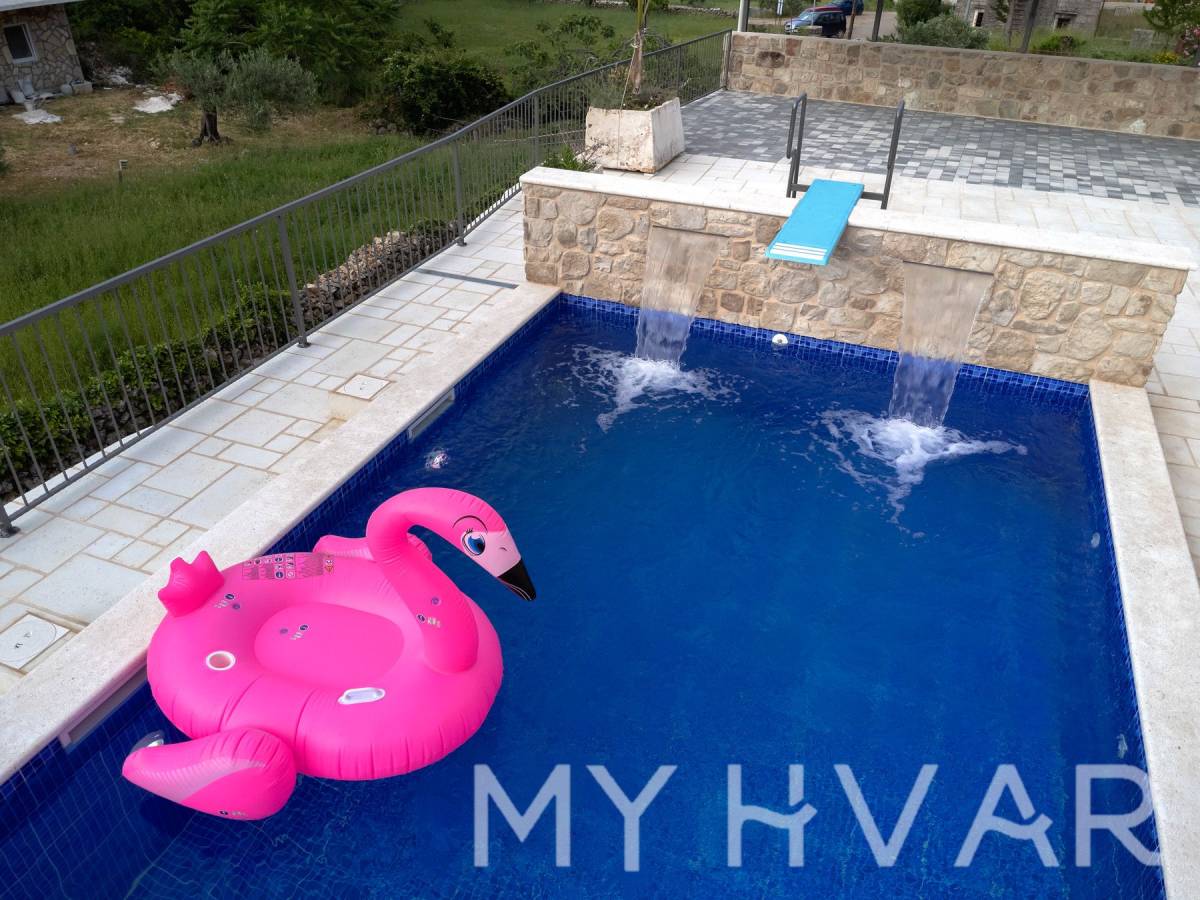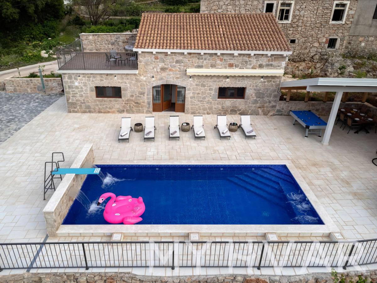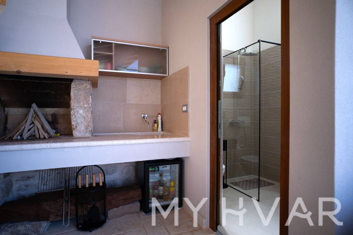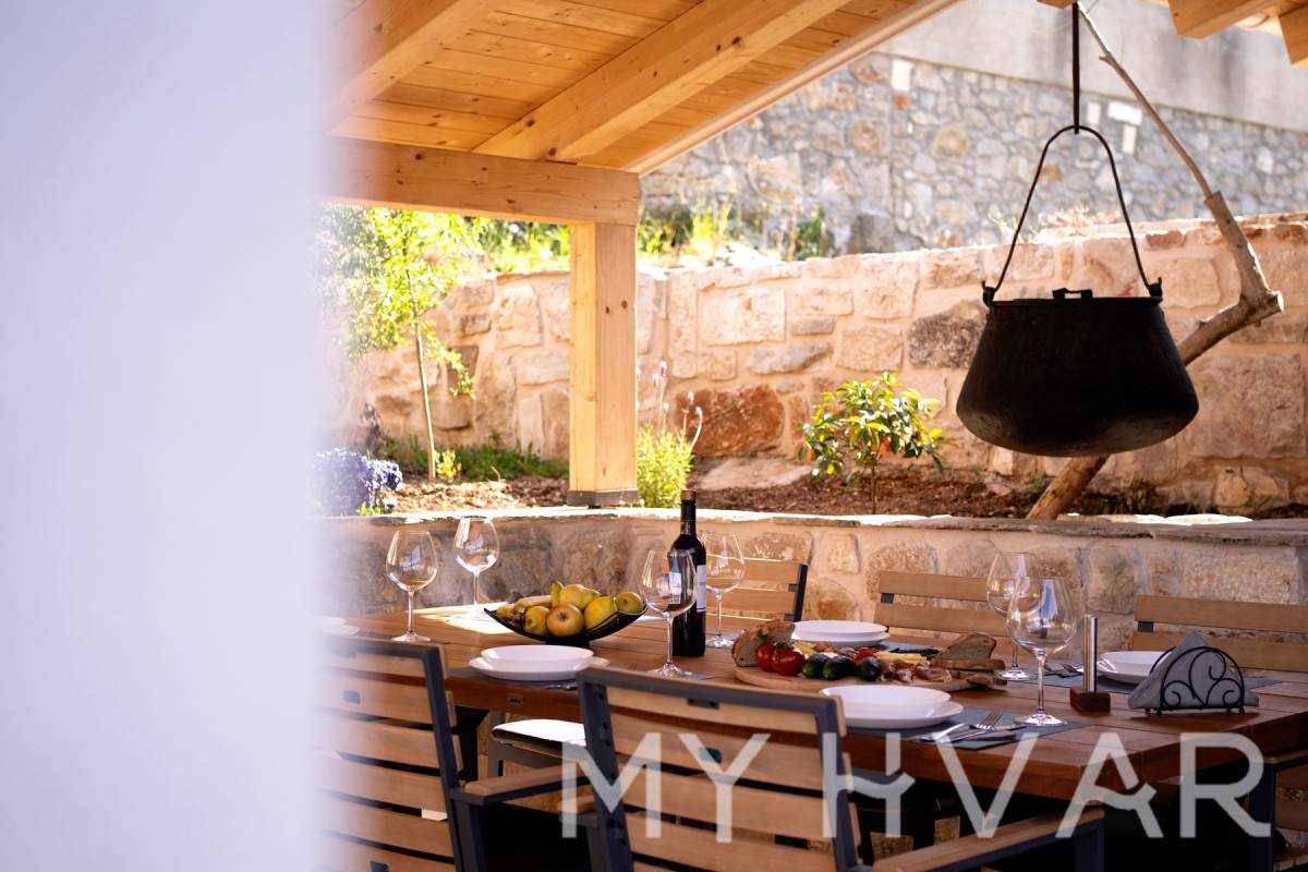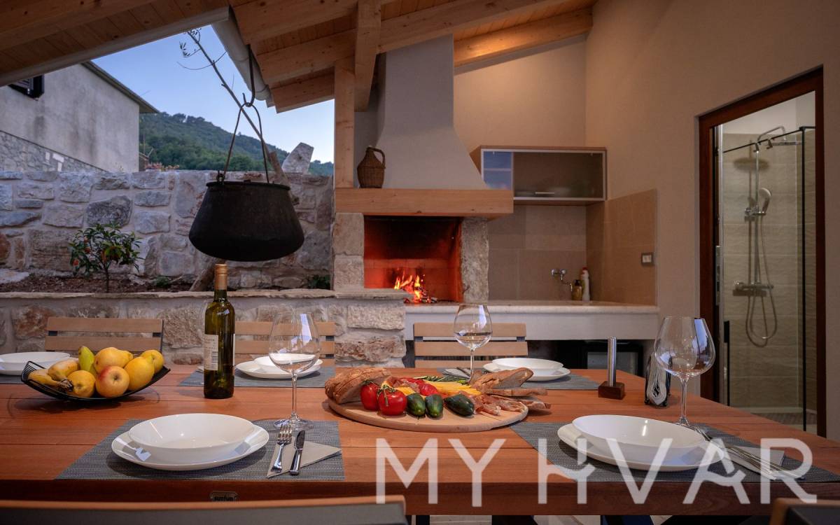 Smještena u slikovitom selu Dol na otoku Hvaru, ova nedavno renovirana vila nudi savršen spoj modernog komfora i tradicionalnog dalmatinskog šarma. Na prostranoj parceli od 435 m², vila se prostire na dvije etaže i sadrži 6 soba, uključujući 3 spavaće sobe i 2 kupaonice, čineći je idealnim utočištem za obitelji ili one koji traže luksuzni bijeg.
