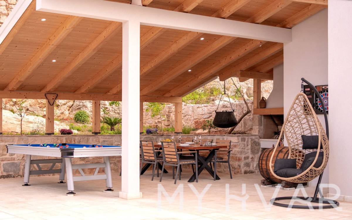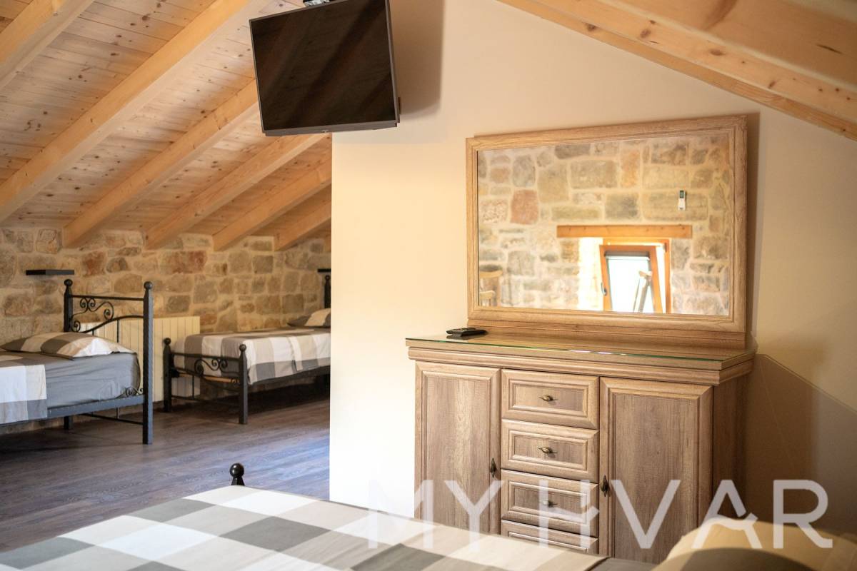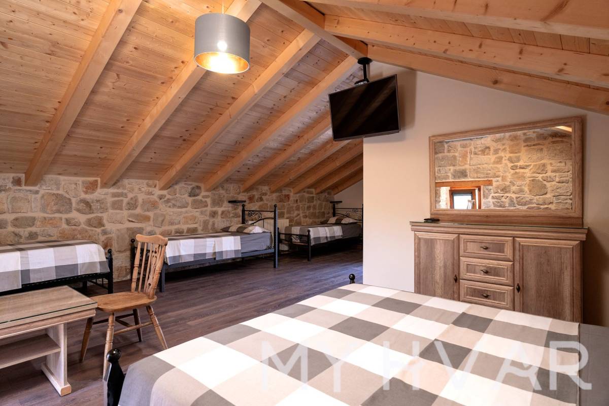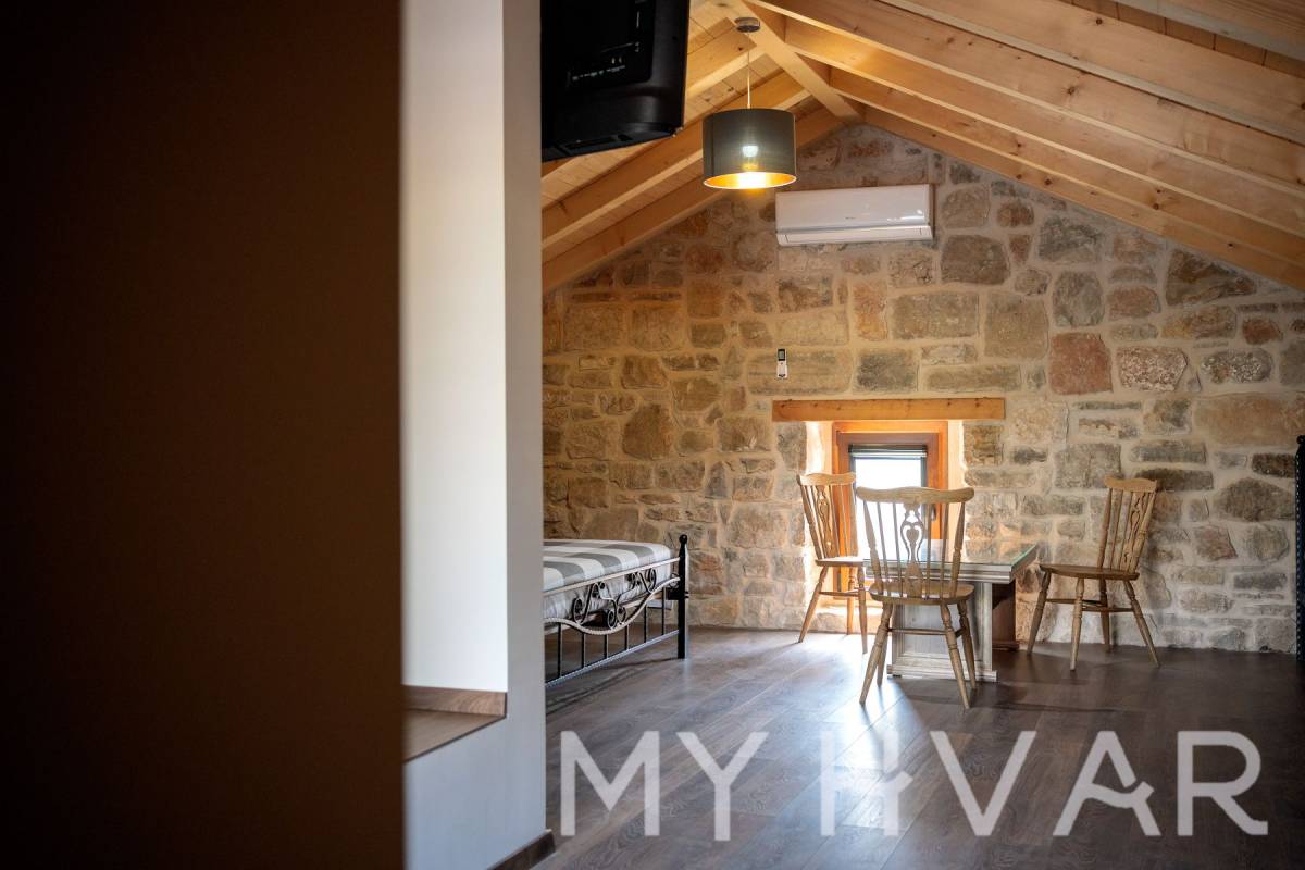 Smještena u slikovitom selu Dol na otoku Hvaru, ova nedavno renovirana vila nudi savršen spoj modernog komfora i tradicionalnog dalmatinskog šarma. Na prostranoj parceli od 435 m², vila se prostire na dvije etaže i sadrži 6 soba, uključujući 3 spavaće sobe i 2 kupaonice, čineći je idealnim utočištem za obitelji ili one koji traže luksuzni bijeg.