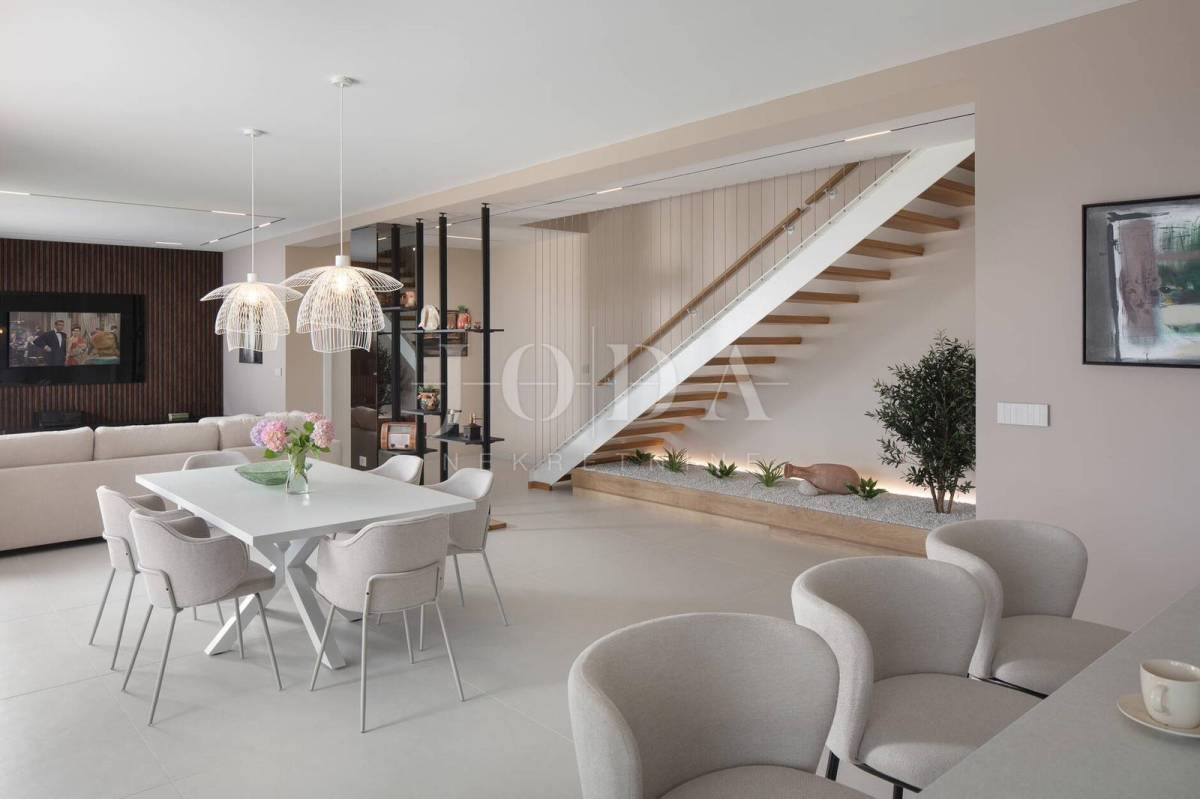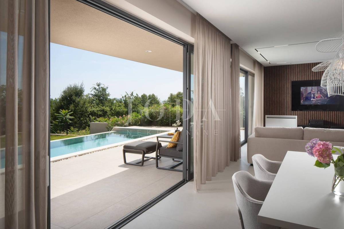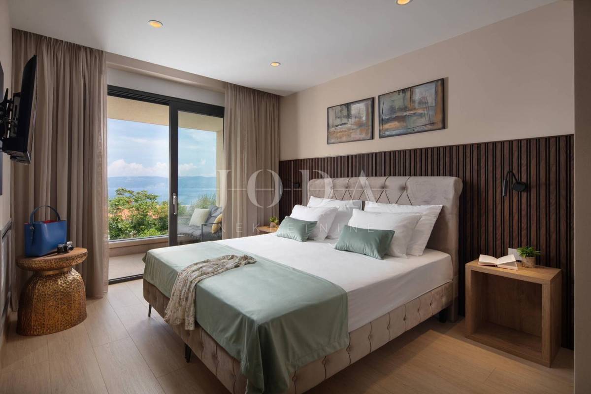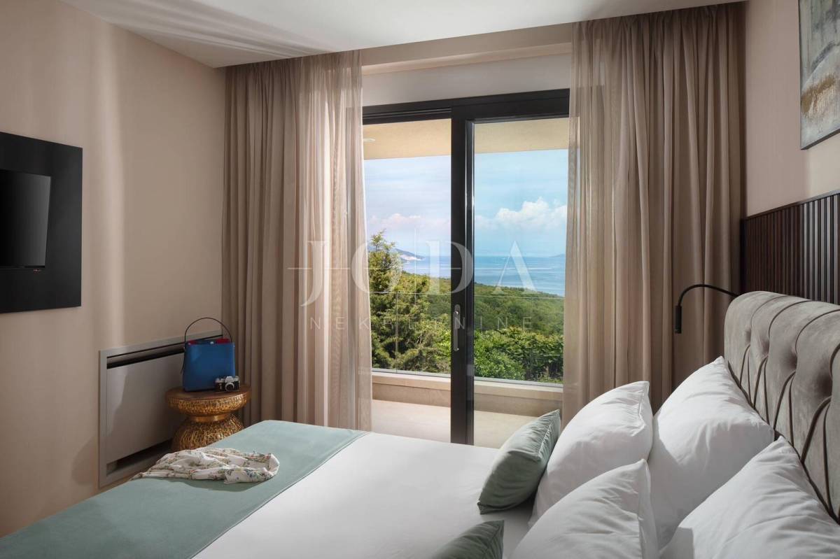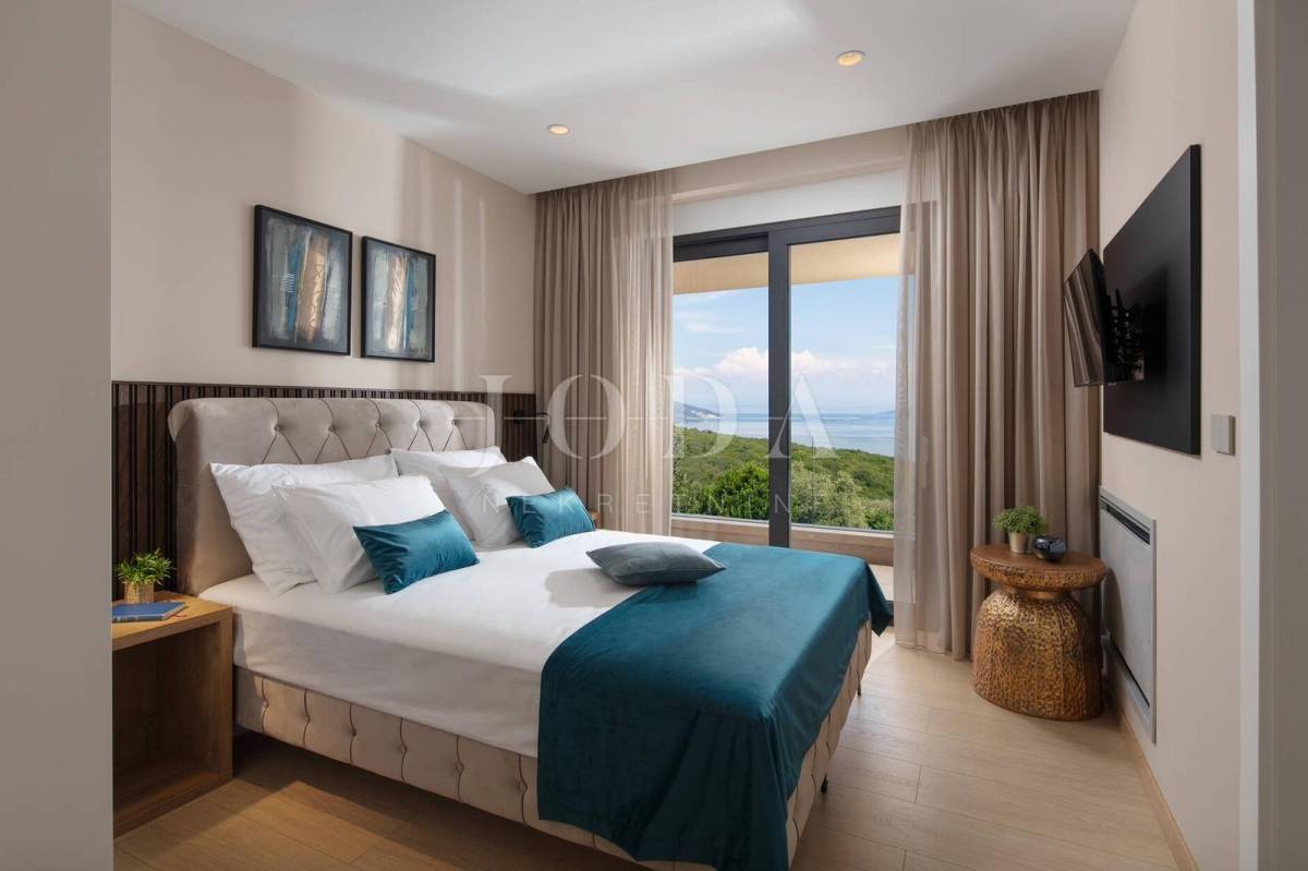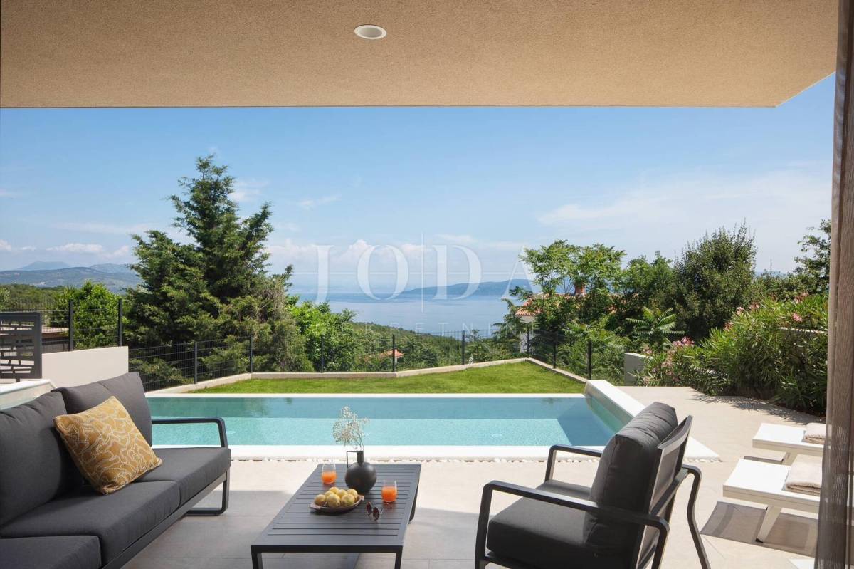Ova predivna luksuzna vila smještena je na parceli od 660 m2 u malom mjestu nedaleko Labina. Okružena je zelenilom koje se pruža sve do mora. Vila je površine 200m2 stambenog prostora te je potpuno opremljena dizajnerskim namještajem s naglaskom na detalje i luksuz. Nalazi se na idealnoj poziciji s prekrasnim neometanim pogledom na more, Kvarner, otoke Cres i Lošinj te Rijeku.