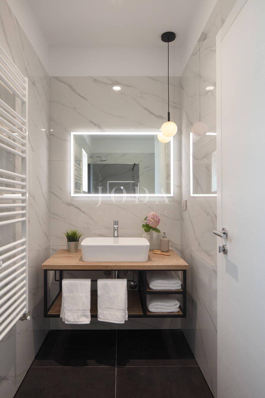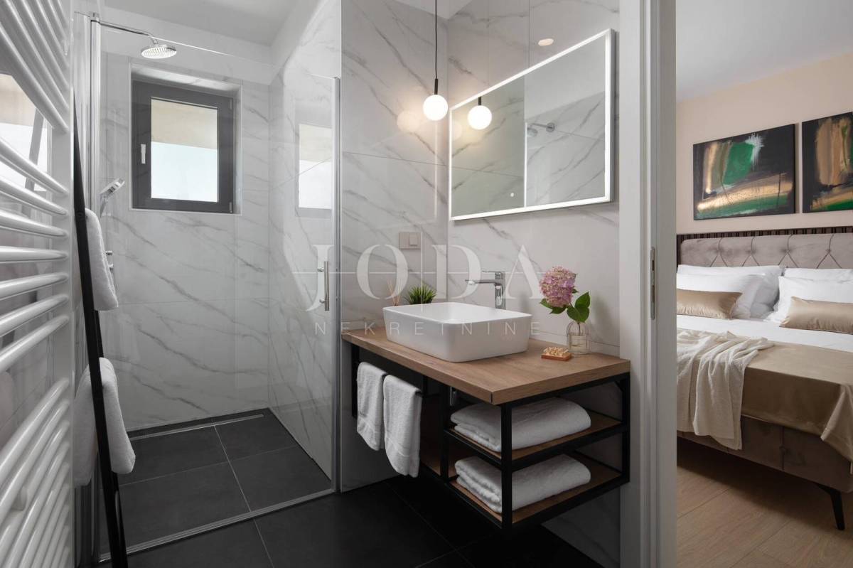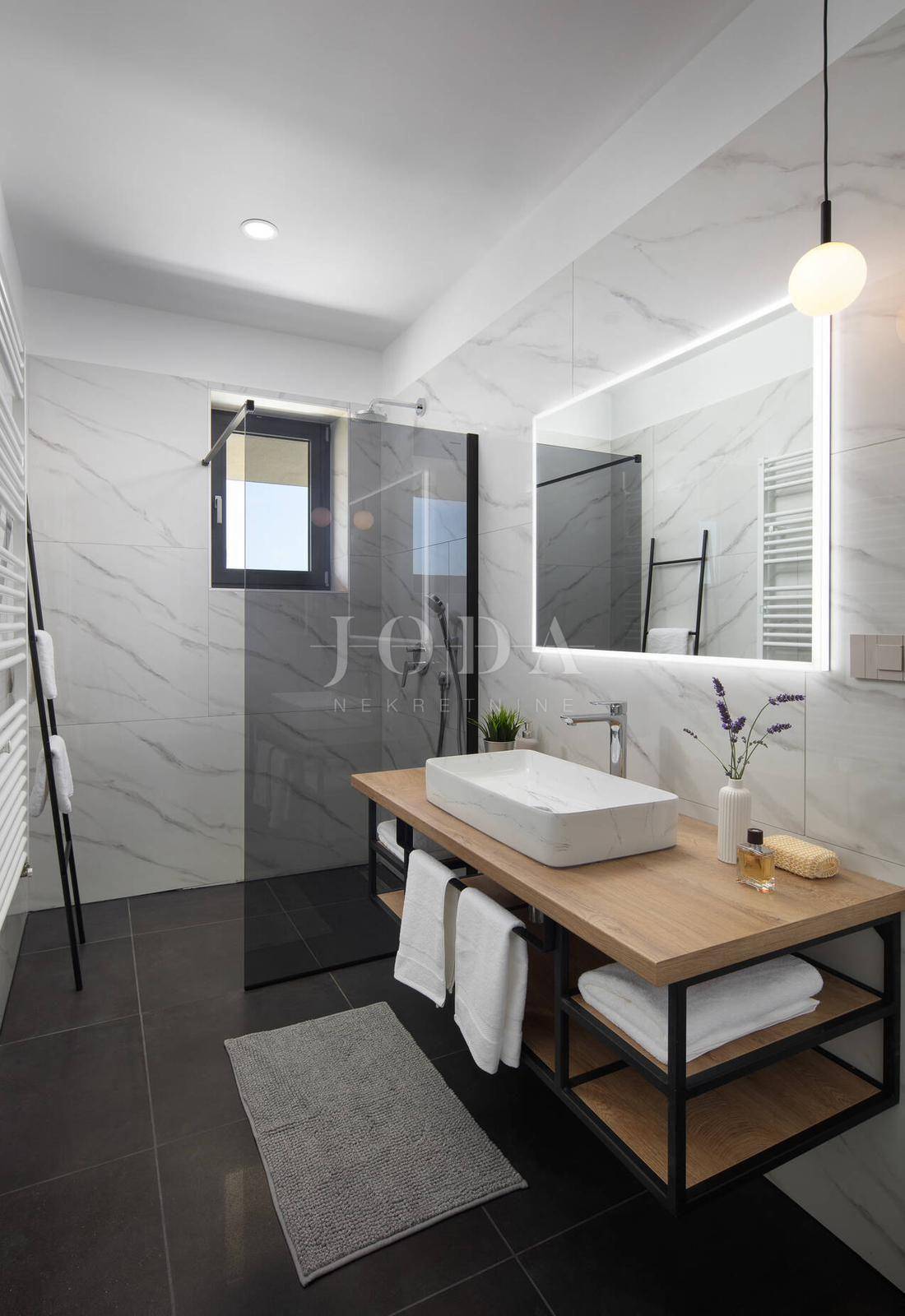 Unutarnjim stepeništem stižemo na kat u kojem su se smjestile 3 spavaće sobe, svaka sa svojom kupaonicom te izlaskom na prostranu terasu s očaravajućim pogledom.