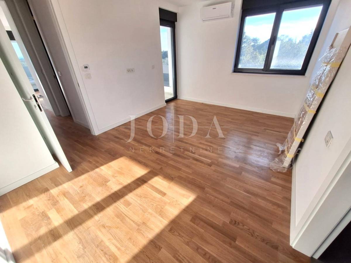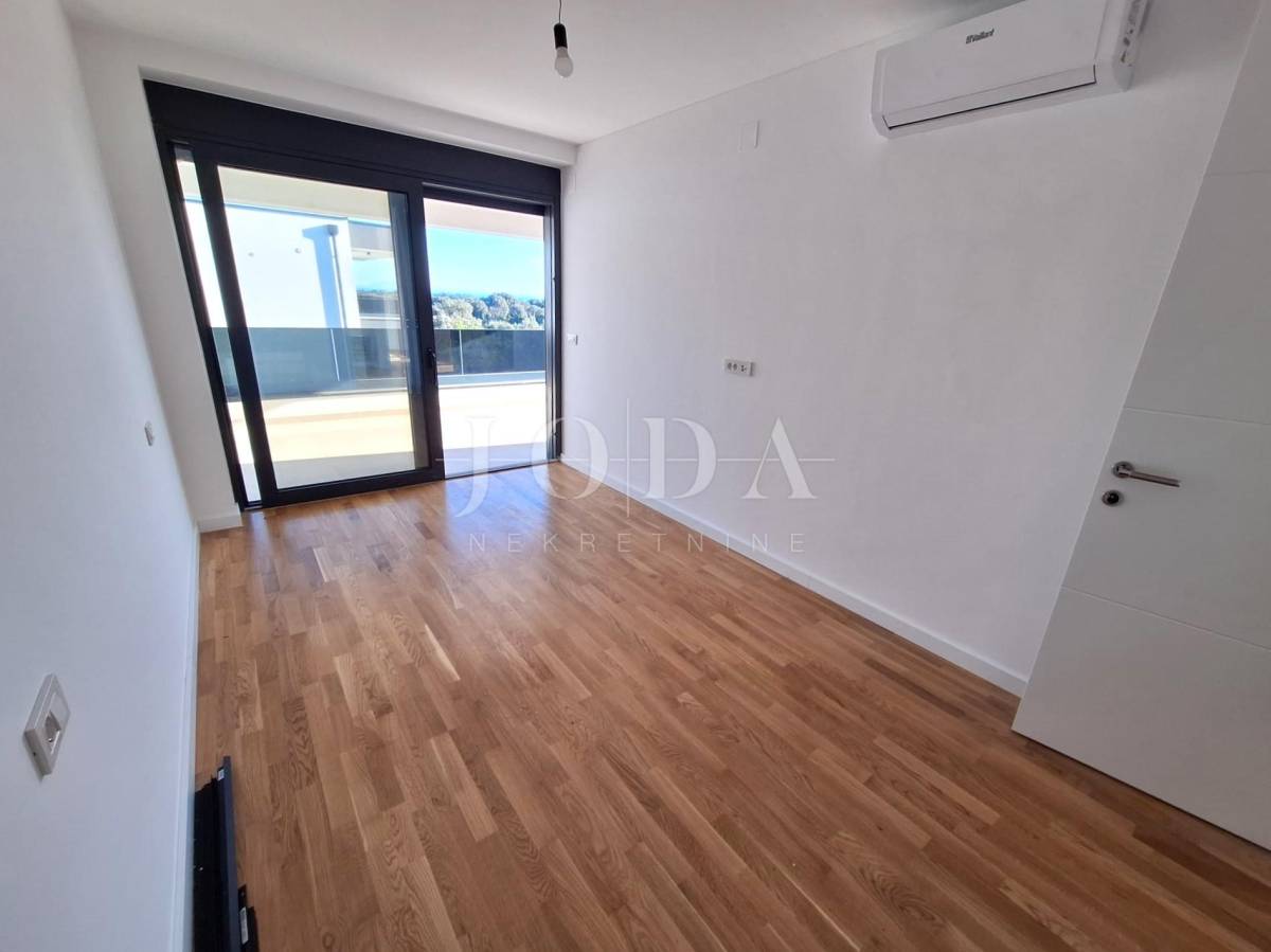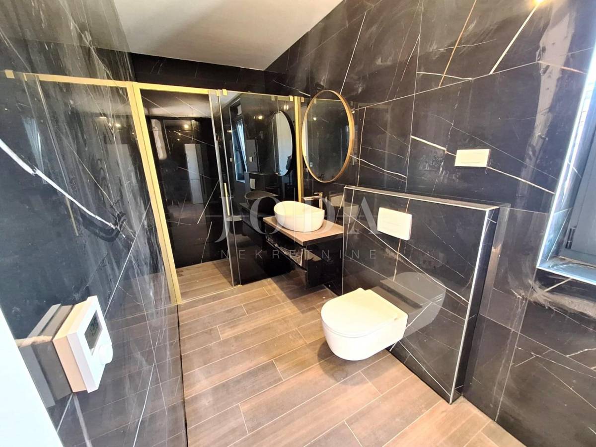 Apartman je podijeljen na dva kata i površine je 160 m2. Nalazi se na prvom i drugom katu. Na prvom katu se nalaze hodnik, tri spavaće sobe s izlazom na balkon s kojeg se pruža pogled na more te dvije kupaonice. Na drugom katu se nalaze prostrani dnevni boravak s izlazom na terasu, kuhinja i blagavaonica te toalet. Prvi i drugi kat su spojeni unutarnji stepeništem, a vanjskim stepeništem se dolazi na krovnu terasu površine cca 60 m2 gdje se nalazi bazen i sunčalište. Zgrada je izgrađena s najkvalitetnijim materijalima i apartmani su opremljeni klima uređajima, dizalicama topline, ALU stolarijom i prvoklasnim parketom i keramikom. Apartmanu pripadaju dva parkirna mjesto. Nekretnina se nalazi na izvanrednoj lokaciji udaljena cca 600 metara od mora i plaže.