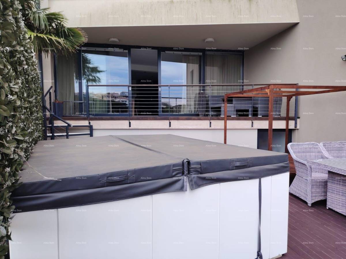 Ovaj luksuzni stan u Puli savršeno spaja moderni dizajn i blizinu mora. Smješten samo 30 metara od plaže, pruža vam jedinstveni pogled i lakoću pristupa svim čarima obale. S prostranim 200 m², stan se sastoji od tri spavaće sobe, prostranog dnevnog boravka, kuhinje te tri kupaonice, što ga čini idealnim za obitelj ili goste. Uživajte u opuštanju na terasi ili u jacuzziju, dok vam garaža i parkirno mjesto osiguravaju dodatnu udobnost. Ovaj objekt, izgrađen 2022. godine, nudi sve što vam je potrebno za savršen život uz more.