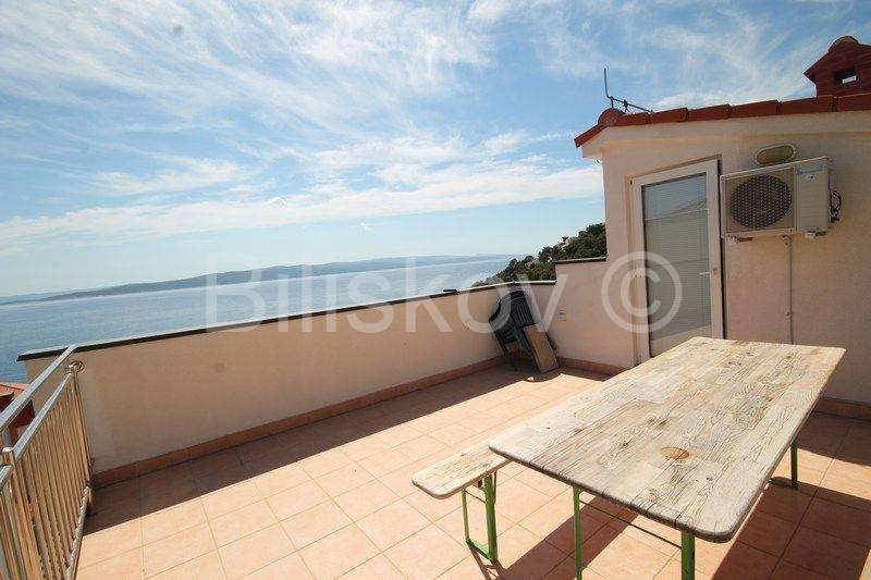 U potkrovlju se nalazi spavaća soba sa izlazom na prostranu terasu sa koje se pruža panoramski pogled na more, kupatilo i manja ostava.