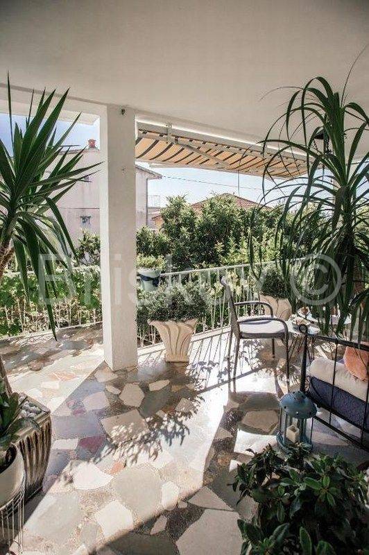 Pozicija kuće je izvanredna, 200m udaljena od užeg centra grada, 400m od mora, 750m od plaže, a na mirnoj lokaciji okružena obiteljskim kućama i nekoliko manjih zgrada.