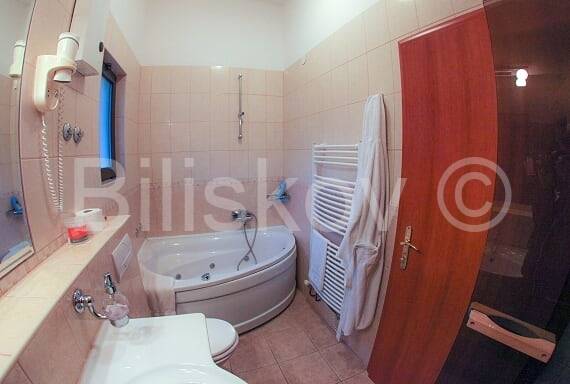 Treći kat se sastoji od jednog apartmana od 40 m2 – smještaj za 4 osobe (soba, kuhinja s blagovaonom i dnevnim boravkom s kaminom – u kupatilu su finska sauna i masažna kada. Drugi apartman od 20 m2 – smještaj za 3 osobe (soba s kuhinjom blagovaonom i dnevnim boravkom – kupatilo tuš kabina sa turskom saunom. Iz ovog apartmana je izlaz na terasu sa na vrhu objekta.