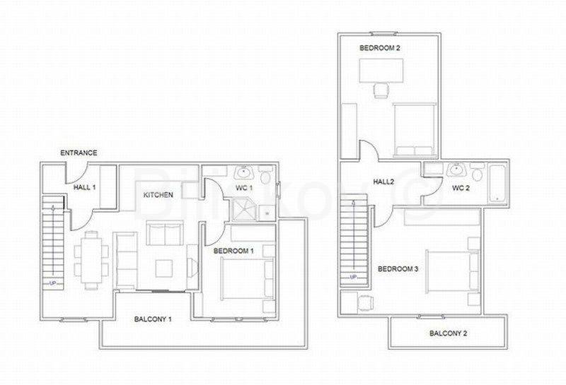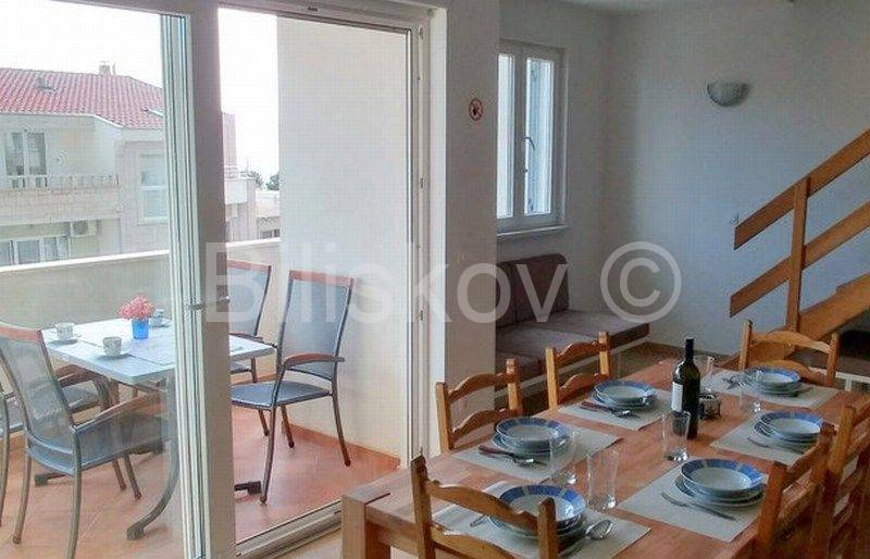 MAKARSKA, komforan dvoetažan trosoban stan, površine 90,21 m2 sa lođom cca 5 m2, terasom od 3,13 m2. Sastoji se od 3 sobe, dnevnog boravka sa kuhinjom i blagovaonicom, dva kupatila, hodnika, dva predsoblja, izbe, lođe i terase. Stanu pripada i vanjsko parking mjesto od 11,52 m2.