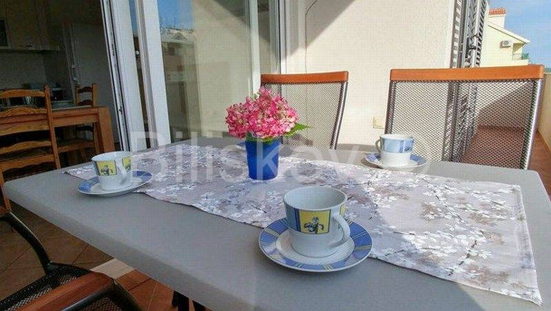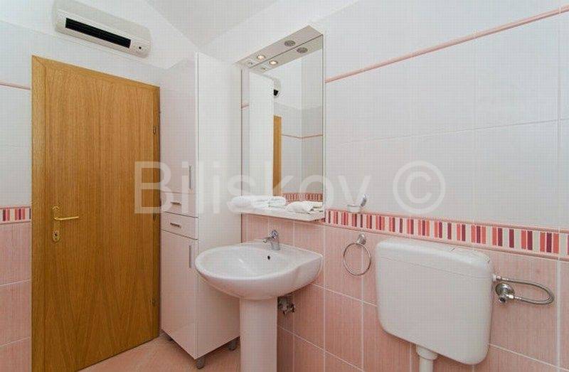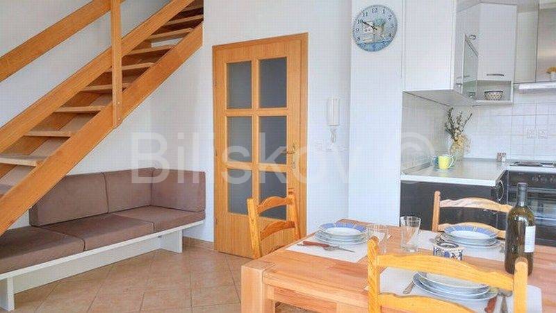 Stan se nalazi na drugoj i trećoj etaži urbane vile, udaljenosti 600 m od šljunčane plaže (zračna udaljenost 500 m). Put do plaže je kroz borovu šumu, a ispod magistrale se nalazi pothodnik za pješake.