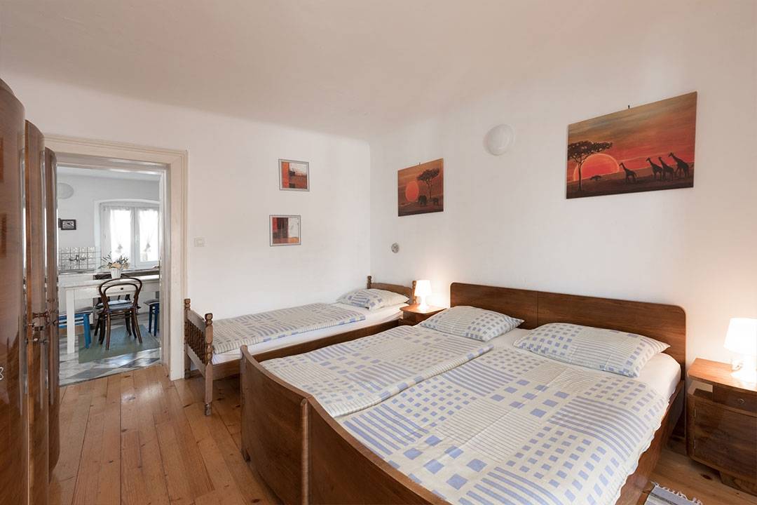 Ova autohtona primorska kuća smjestila se u blizini mora, na svega 5 minuta hoda do plaže i na udaljenosti od 100 metara od gradskog šetališta. Sagrađena je 1854. godine za tadašnjeg gradonačelnika i još uvijek je krase izvorni debeli kameni zidovi. Kompletno je adaptirana 2004. godine. Sastoji se od šest odvojenih aparatima koji su kategorizirani s 3 zvjezdice, a iz svakog apartmana se pruža pogled na more i lošinjsku valu. Ukupna površina objekta je 300 m2. Postoji mogućnost za dobivanje još jednog apartmana u prizemlju, dodatnom adaptacijom, tako da bi se vila mogla etažirati sa ukupno 7 apartmana (6+1). U prizemlju se nalazi višenamjenski prostor - konoba i vinski podrum. Na zelenoj okućnici od 260 m2 smješten je ograđeni vrt s roštiljem i malim igralištem, te vanjskim tušem i stablima limuna.