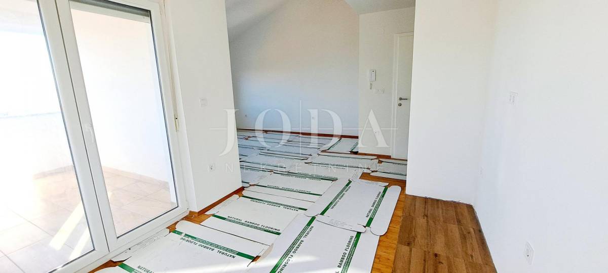 Prodaje se stan površine 58,83 m2 s pripadajućim tavanom površine 27 m2. Stan se sastoji od dvije spavaće sobe, dnevnog boravka s kuhinjom i blagovaonom, kupaone, hodnika i terase. Na tavanu je moguće izvesti još jednu spavaću sobu. Klimatizirano. Apartmanu pripada jedno parkirno mjesto.
