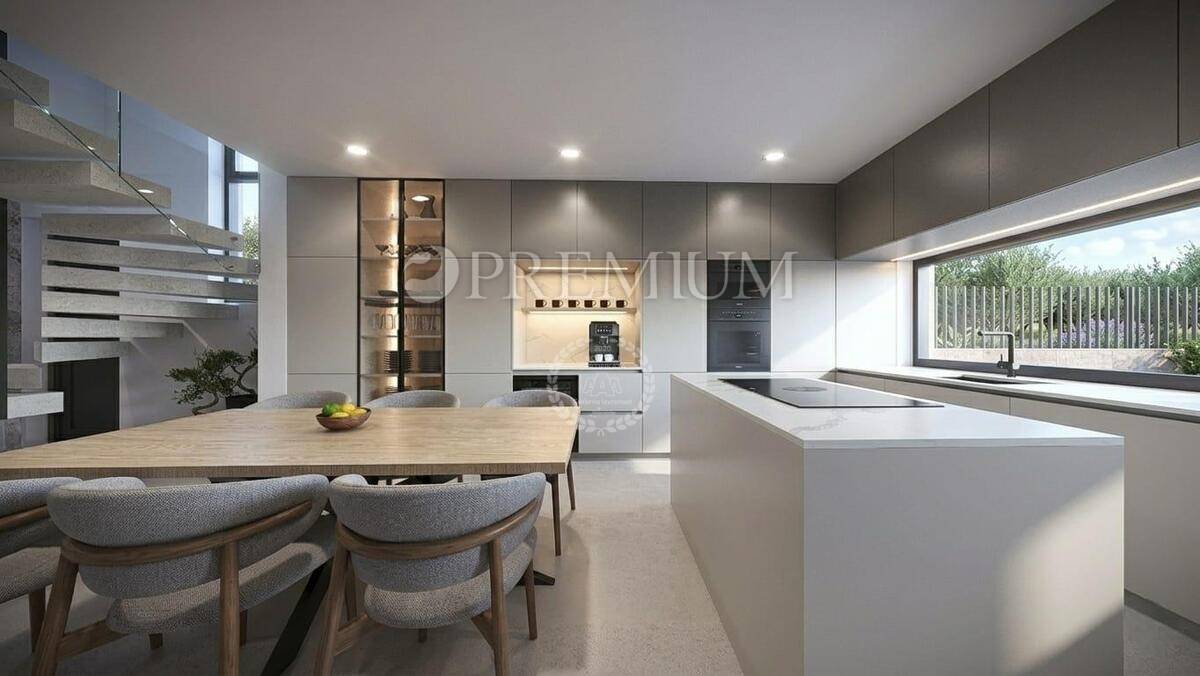 Unutarnjim stepenicama dolazi se u prizemlje gdje se nalazi ulazni prostor, ostava, WC te kuhinja s blagovaonicom i dnevnim boravkom u open space konceptu, s izlazom na terasu. Na terasi je predviđena ljetna kuhinja, dok će okućnica biti lijepo uređena, s predviđenim grijanim bazenom.