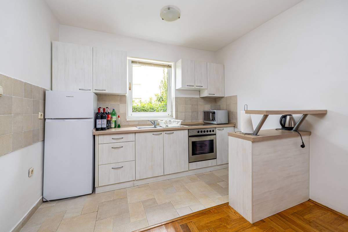 Nekretnine otok Krk, Malinska – ovaj prostrani dvosobni apartman smješten u prizemlju obiteljske kuće pruža savršen osjećaj udobnosti, uz dodatnu prednost vlastite okućnice. Već pri ulasku osjeti se ugodna atmosfera doma – hodnik vodi do dvije spavaće sobe, idealne za opuštanje nakon dana provedenog na plaži. Kupaonica je moderno uređena, a središnji dio apartmana čini otvoreni prostor koji spaja kuhinju, blagovaonicu i dnevni boravak, stvarajući savršeno mjesto za druženja. Iz dnevnog boravka izlazi se na natkrivenu terasu, a okućnica nudi dodatni prostor za uživanje na svježem zraku, bilo da je riječ o jutarnjoj kavi ili ljetnim večerima pod zvijezdama. Apartman je potpuno namješten i opremljen, klimatiziran te spreman za useljenje, a PVC stolarija osigurava ugodnu temperaturu tijekom cijele godine. Pripada mu i parkirno mjesto u dvorištu. Lokacija je izvrsna – blizina mora i svih sadržaja čini ovu nekretninu idealnom kako za osobno korištenje, tako i za investiciju u turistički najam.