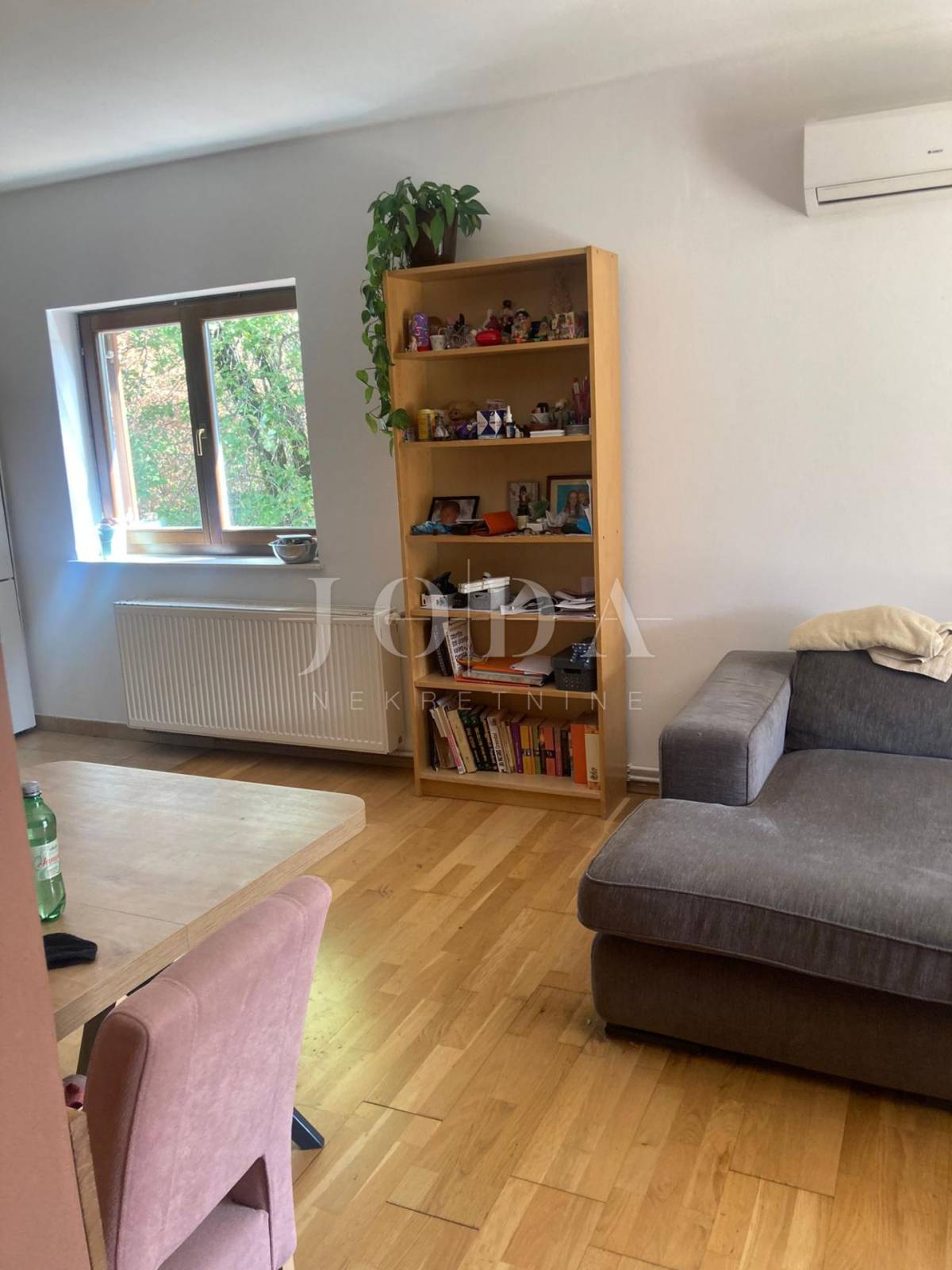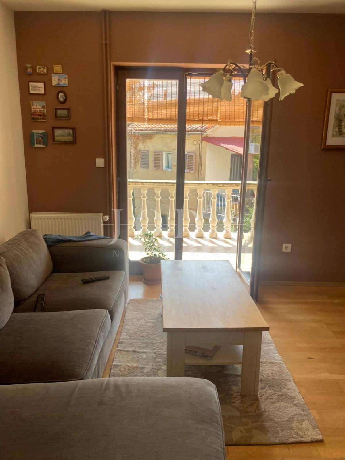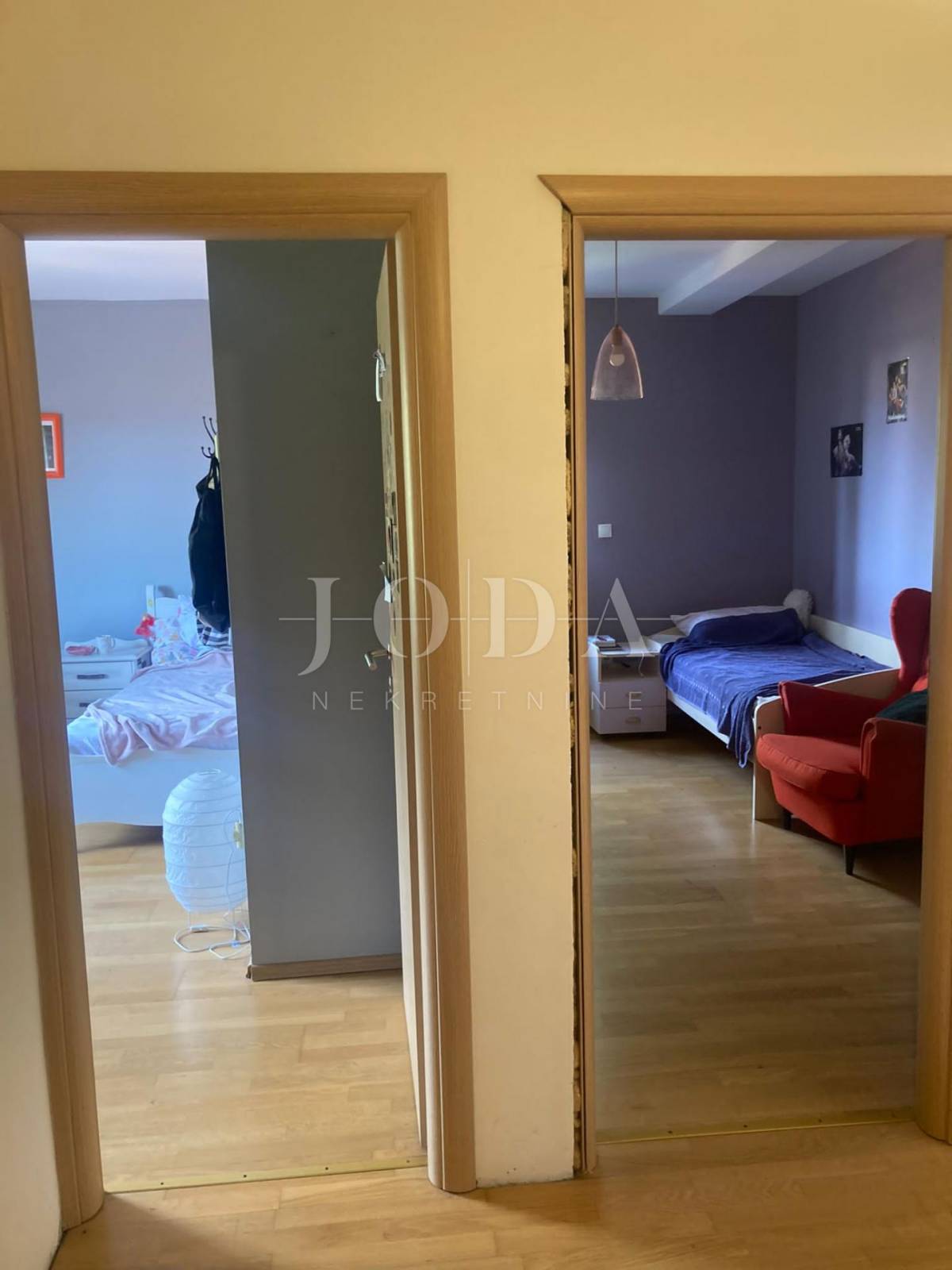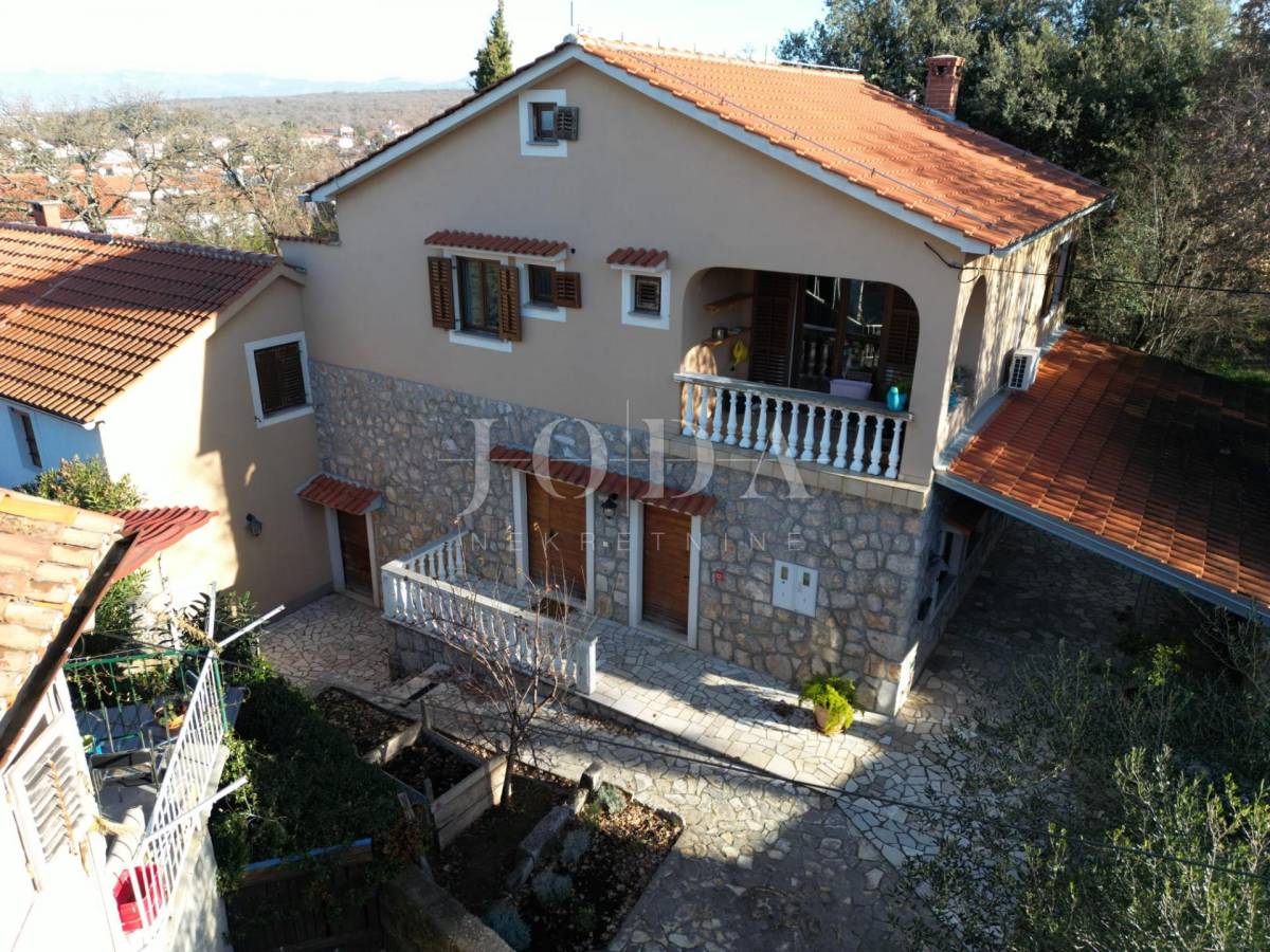 Na prvom katu smješten je prostran stan površine 107,22 m2, s predsobljem, kuhinjom povezanom s blagovaonicom i dnevnim boravkom, tri spavaće sobe, dvije kupaonice, WC-om, te ostavom i loggiom. Grijanje je višestruko rješeno kroz klima uređaje, peći na pelete i drva, te radijatore na struju.