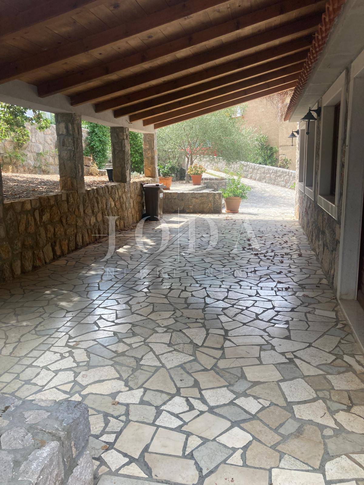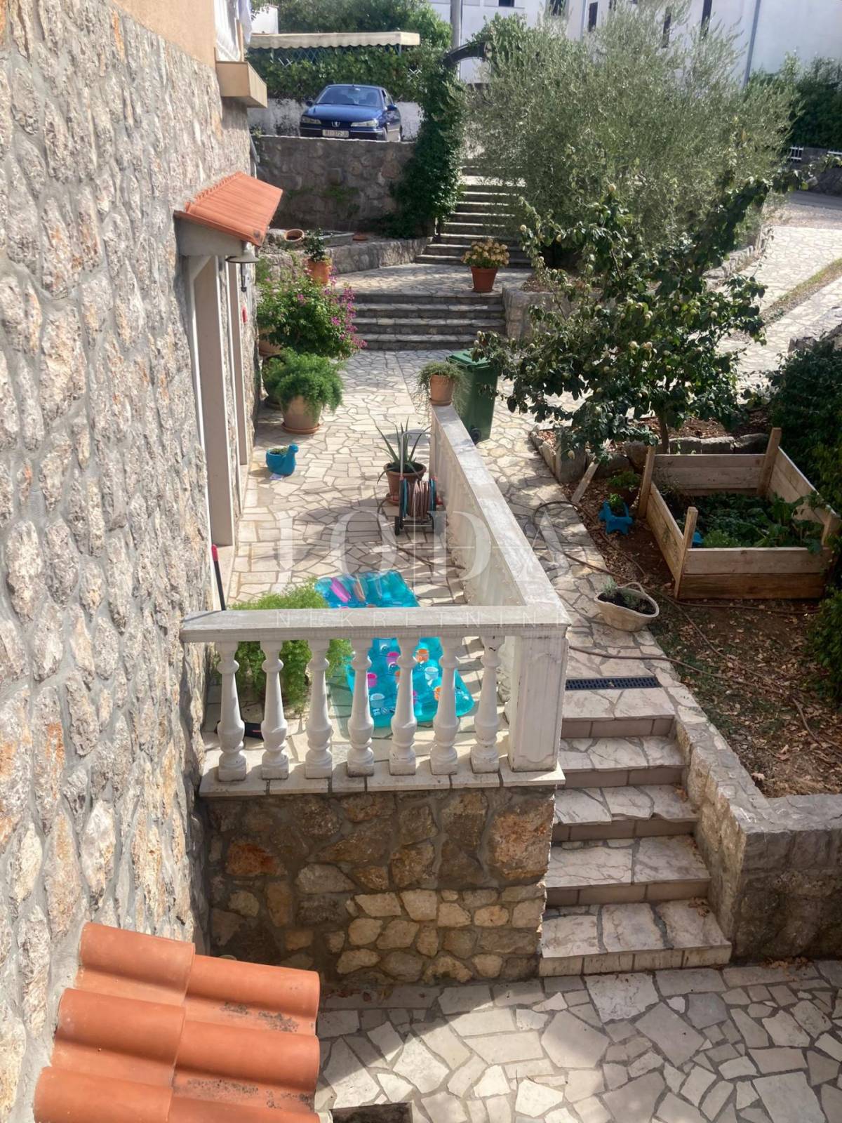Na prodaju je elegantna dvojna kuća smještena u mirnoj Malinskoj, sa spojem poslovnog prostora i prostranog stana. Ukupna površina od 281,70 m2 prostire se kroz podrum, prizemlje i kat. Podrum nudi praktičan skladišni prostor veličine 39,70 m2. Prizemlje, koje je nekada služilo kao ugostiteljski objekt, sada obuhvaća kuhinju, uslužni prostor, spremište, pripremni dio, garderobu te odvojene toalete.