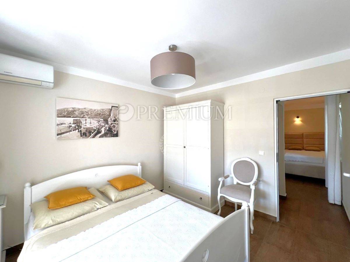 Apartman je u potpunosti adaptiran i kvalitetno opremljen, s aluminijskom stolarijom i dva klima uređaja, što omogućuje ugodnu temperaturu tijekom cijele godine, bez dodatnih ulaganja.