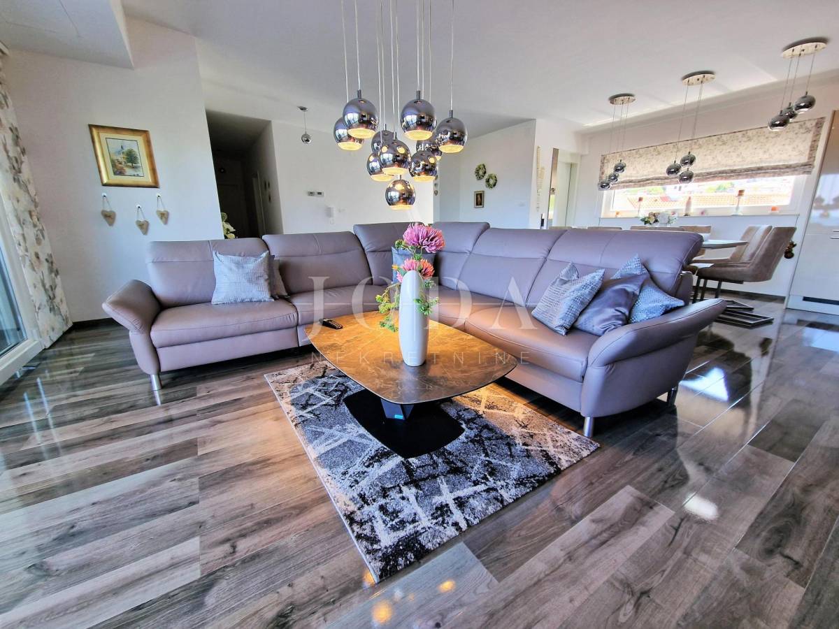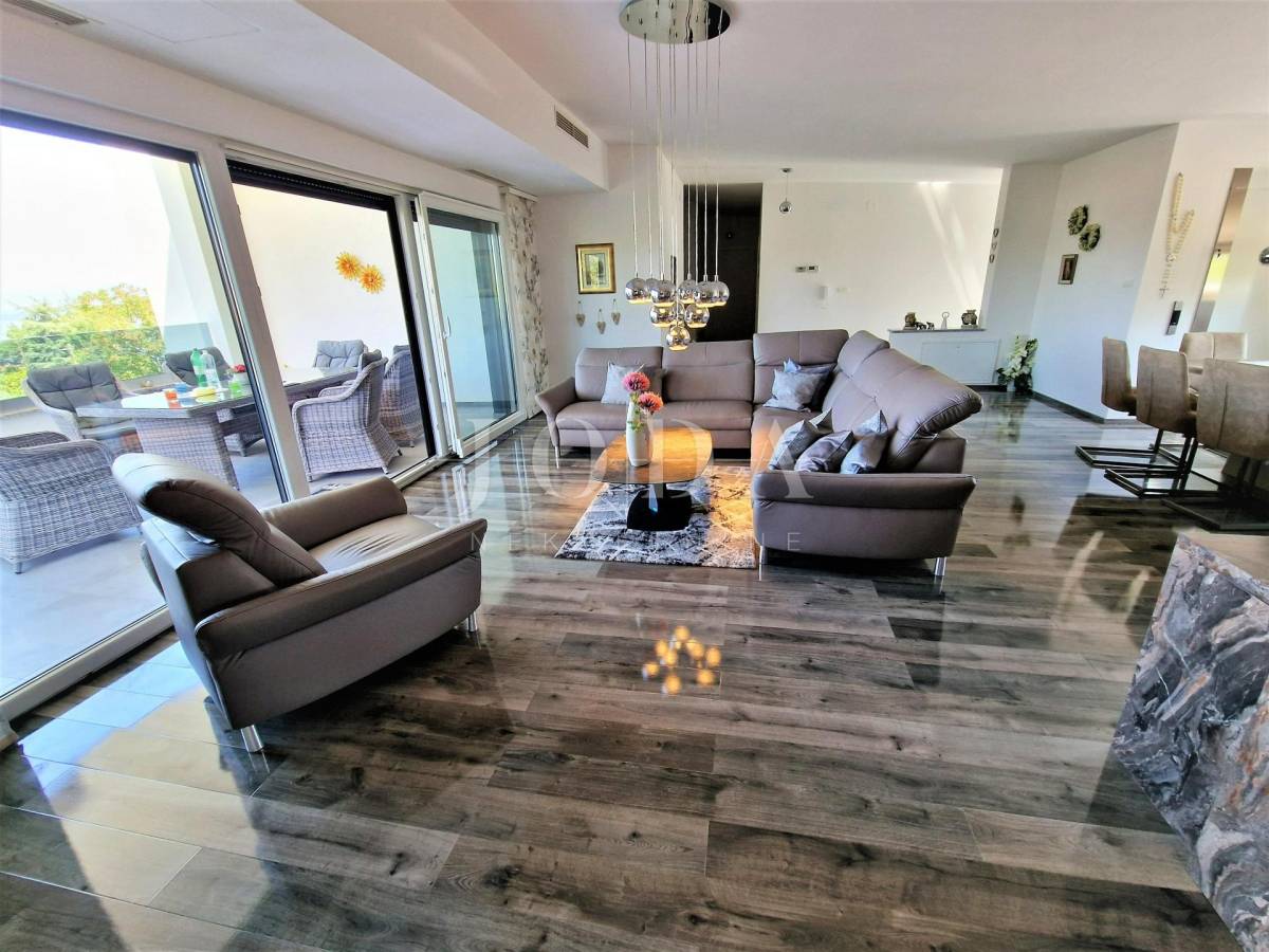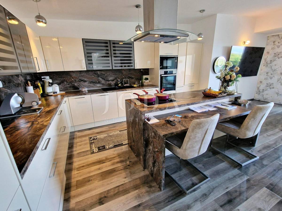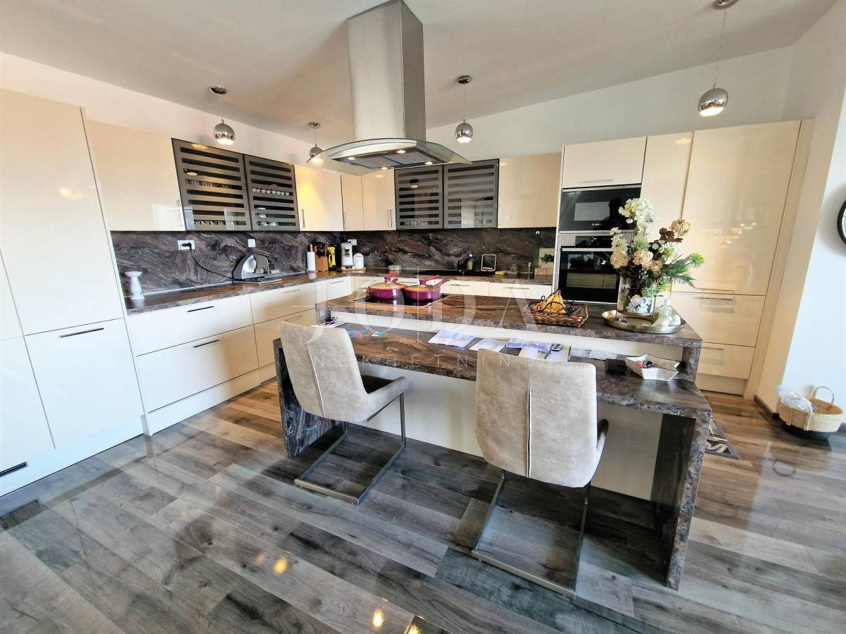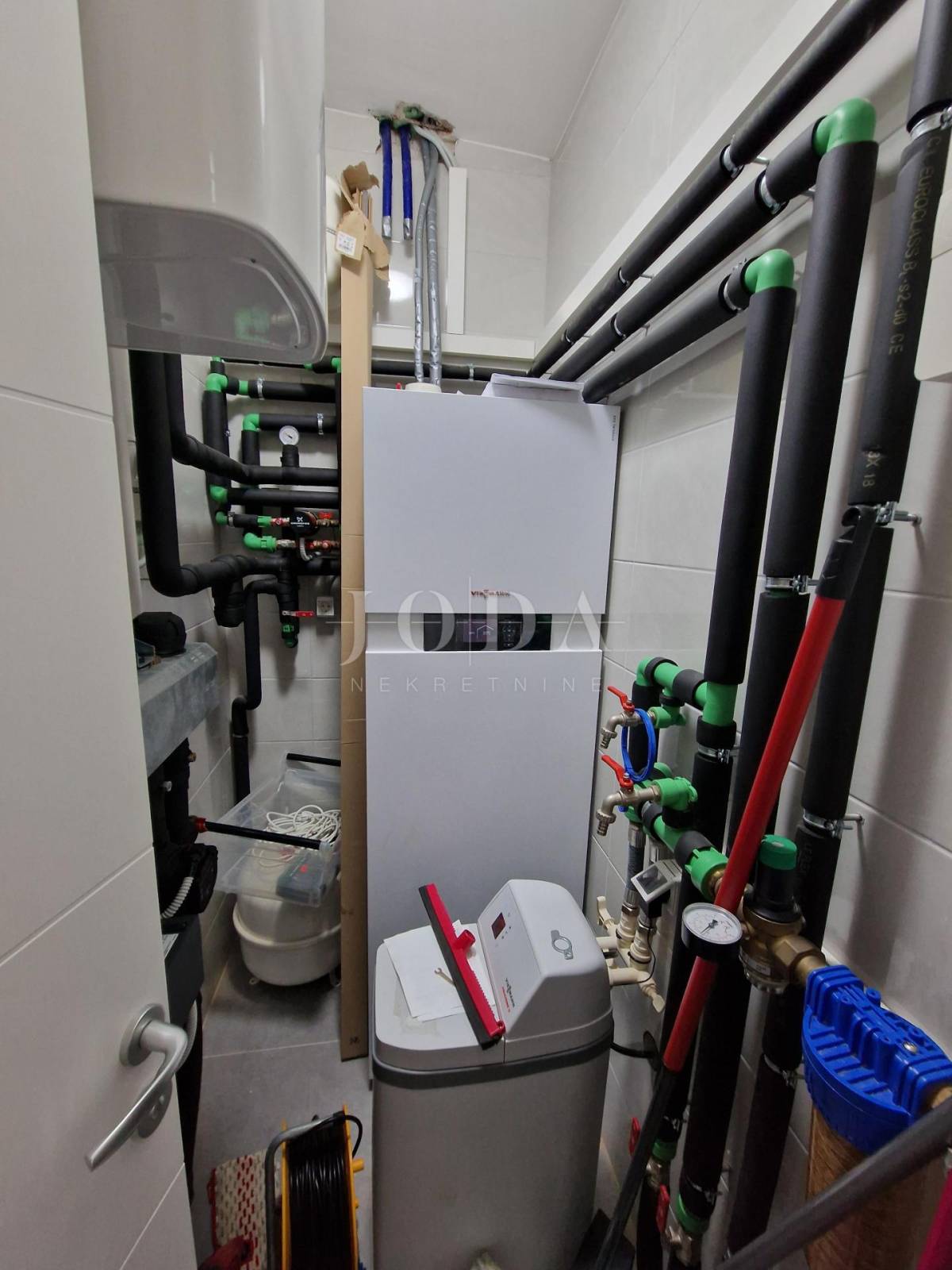 U modernoj zgradi sa samo pet stanova prodaje se penthouse površine 146 m2 s pomoćnim objektom površine 52 na okućnici zgrade. Stan se sastoji od tri spavaće sobe, kupaonice, wc-a, dnevnog boravka s kuhinjom i blagovaonom i tehničke prostorije. Penthouse je iz prizemlja povezan privatnim dizalom. Pripadaju mu dva parkirna mjesta i pomoćni objekt površine 52 m2 s okućnicom od 150 m2, uređen kao jednosoban apartman. Prodaje se potpuno opremljen novim namještajem. Grijanje i hlađenje je pomoću Viessmann sustava dizalice topline.