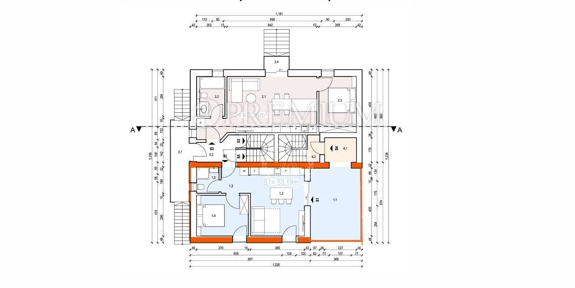 Apartman površine 54 m² smješten je u visokom prizemlju objekta s ukupno pet stambenih jedinica, koji je u fazi potpune rekonstrukcije.