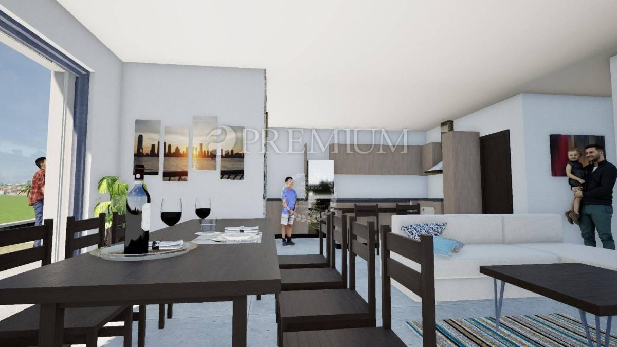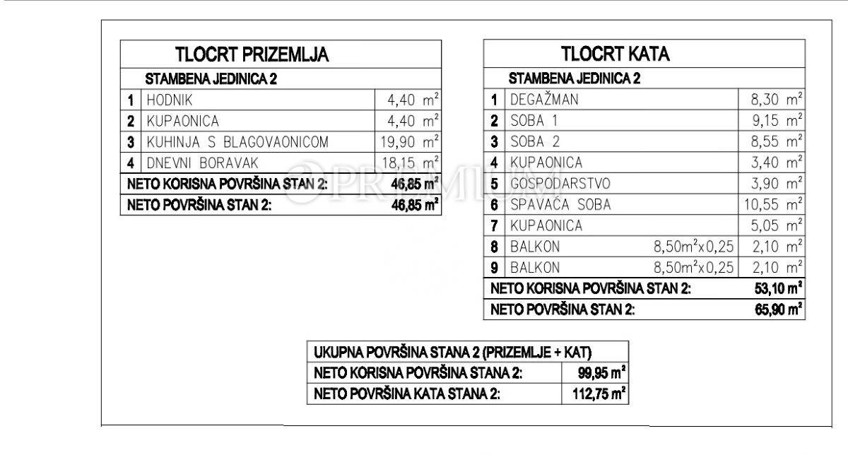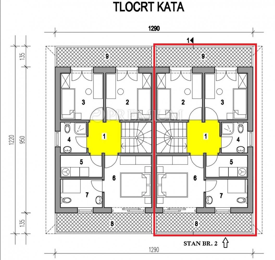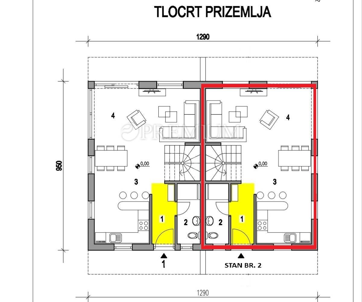 Na prodaju je nova dvojna kuća s neto stambenom površinom od 113 m² i okućnicom od cca 160 m². Kuća se prostire na dvije etaže.