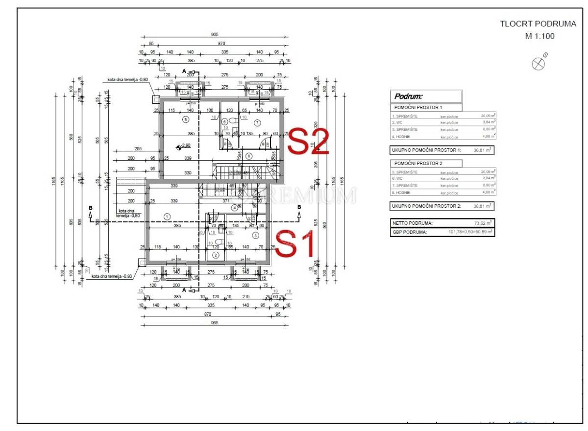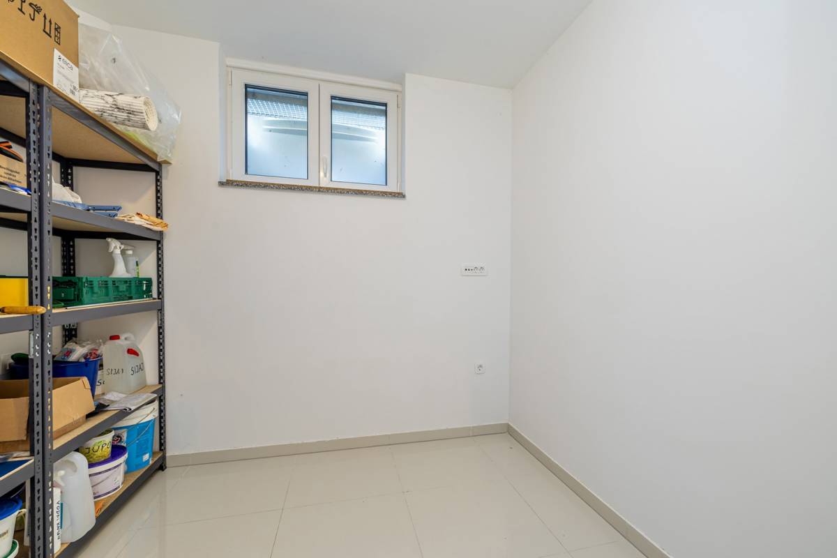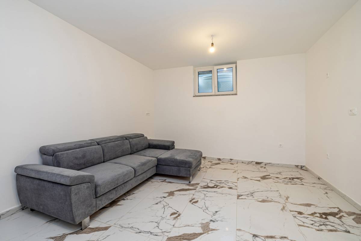 U suterenu se nalazi dodatna spavaća soba, prostrani dnevni boravak (s mogućnošću ugradnje kuhinje), kupaonica, hodnik te praktično spremište. Dio namještaja za dnevni boravak već je dostupan i zapakiran, a budući vlasnik može ga montirati i urediti prostor prema vlastitim željama – savršeno za goste, privatnu zonu ili hobi prostor.