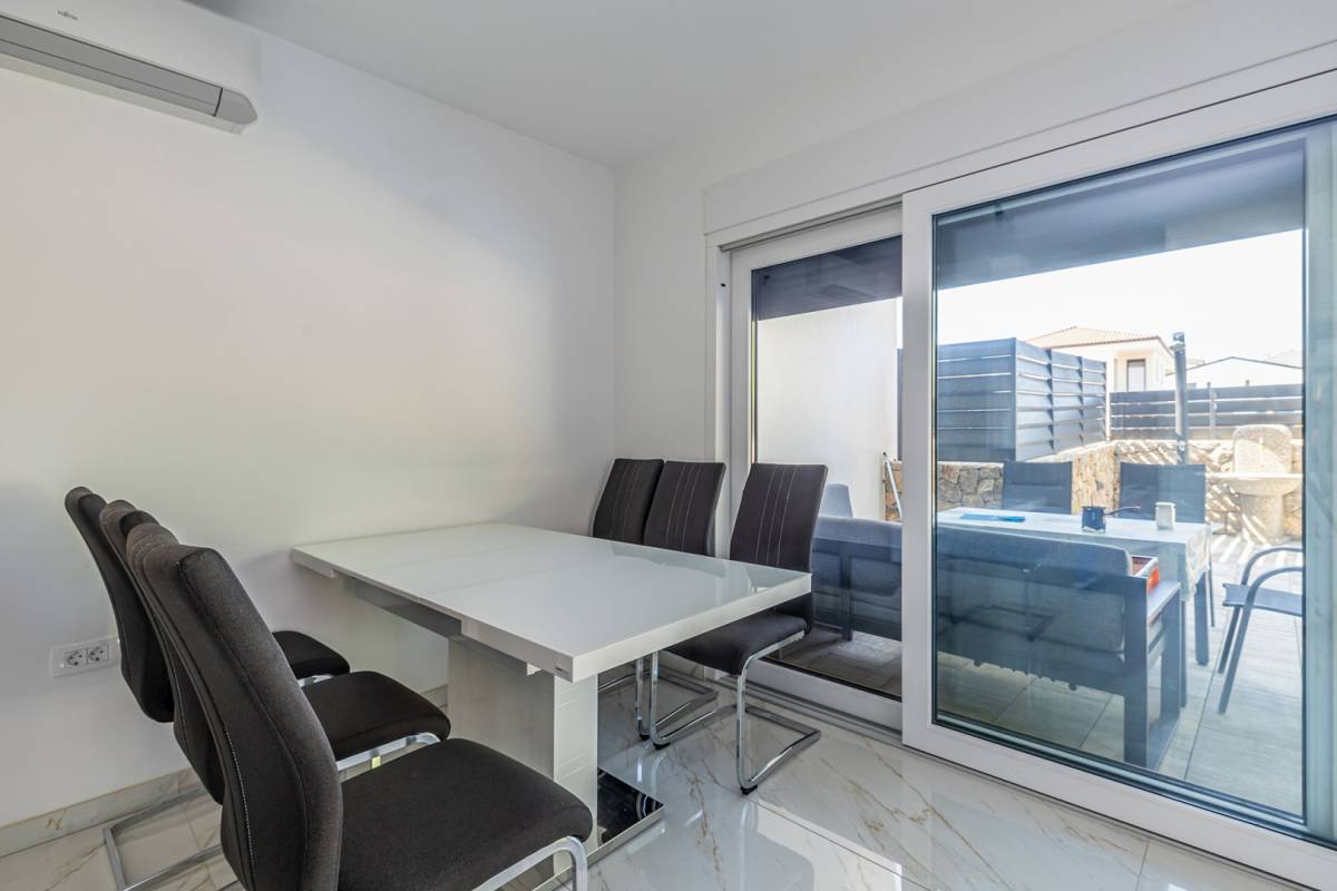 Prizemlje čini središte doma s moderno dizajniranim dnevnim boravkom, kuhinjom i blagovaonicom s izlazom na natkrivenu terasu i sunčalište uz bazen. Tu se nalazi i jedna spavaća soba, kupaonica te hodnik.