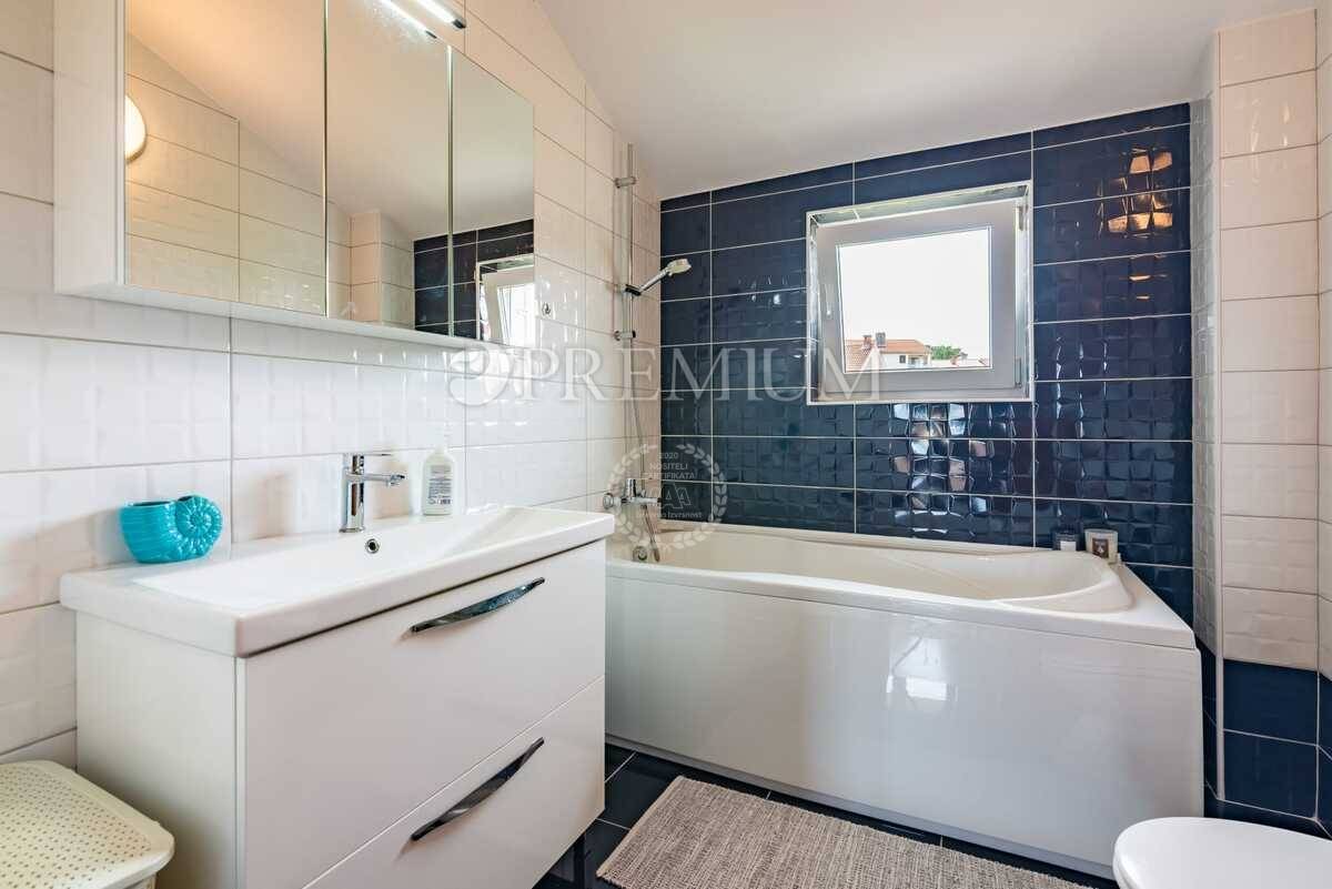 Na drugom katu nalazi se hodnik, dvije kupaonice i tri spavaće sobe. Dvije veće spavaće sobe imaju izlaz na terasu s otvorenim pogledom na more, dok je treća soba nešto manja te se može koristiti kao dječja soba, radna soba ili dodatna spavaća soba.