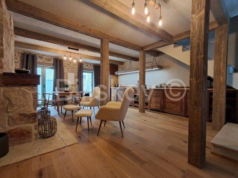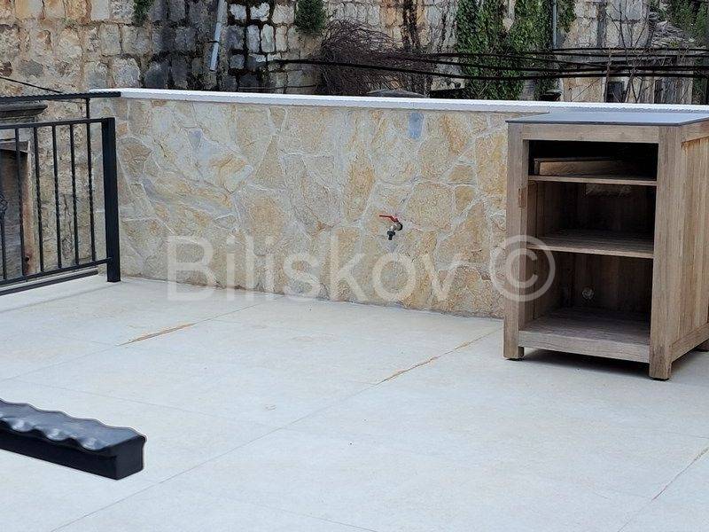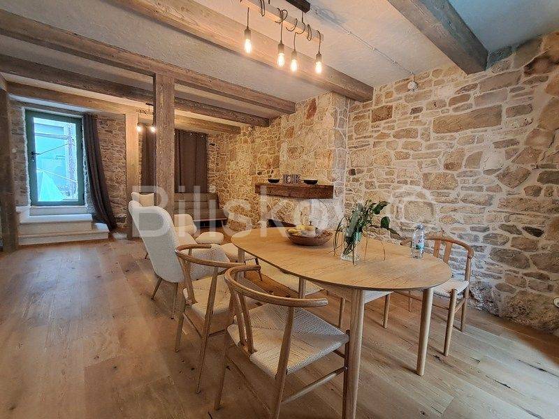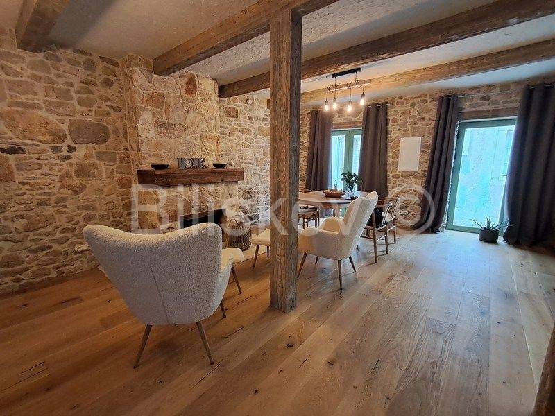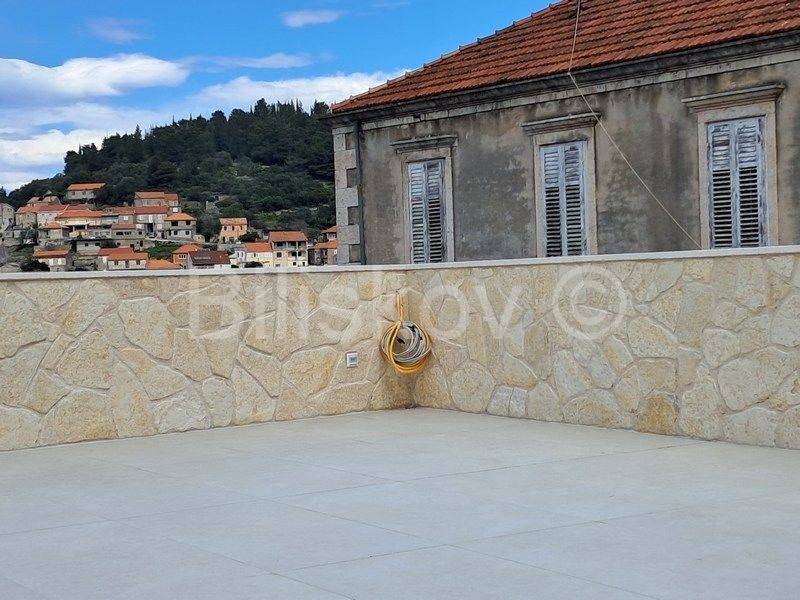 Blato, Korčula, centar, renovirana kamena kuća cca. 140 m2.Potpuno renovirana tradicionalna kamena kuća čija je rekonstrukcija završena prije otprilike šest mjeseci. Svi sustavi su novi: električne instalacije, vodovod, izolacija i uređenje - sve je napravljeno po visokim standardima.Kuća je na dva kata s krovnom terasom.