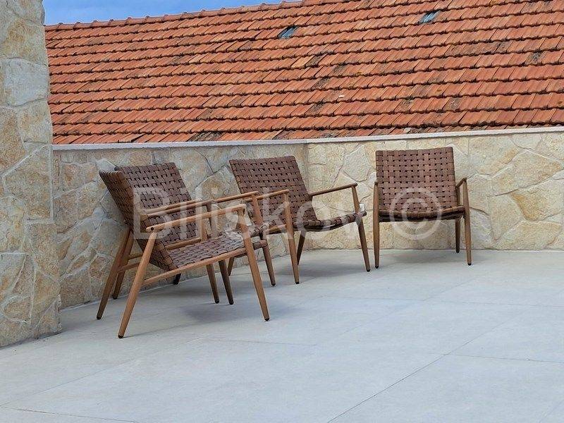 Na drugom katu nalazi se otvorena terasa s pogledom na samostan i crkvu.Kuća se nalazi u samom centru Blata, na vrlo atraktivnoj lokaciji, blizu trgovina, kafića, restorana i sve infrastrukture mjesta, ali istovremeno u mirnoj sporednoj ulici, što pruža mir i privatnost.Sve je napravljeno u tradicionalnom dalmatinskom stilu, s kamenom kao glavnim elementom, a sav namještaj ostaje u kući.