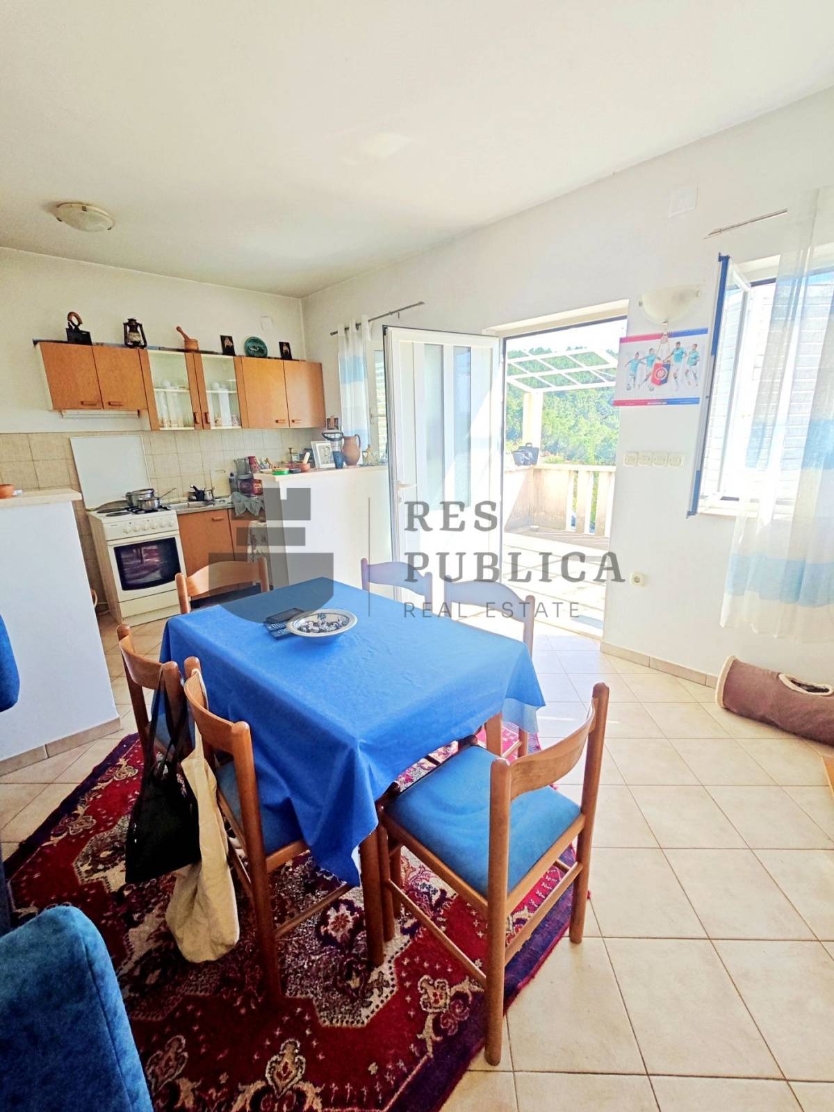 Uživajte u svakom trenutku na prekrasnoj terasi površine 35 m2, dok vas očaravajući pogled na beskrajno more obuzima osjećajem mira i spokoja. Okućnica, ukrašena raznovrsnim agrumima, smokvama te s kominom iza kuće, dodaje dodatnu vrijednost ovoj nekretnini. Ne zaboravimo ni zemljište s maslinama ispod ceste, čija površina iznosi oko 270 m2, dodajući poseban šarm i potencijal za vlastiti mali maslinik.