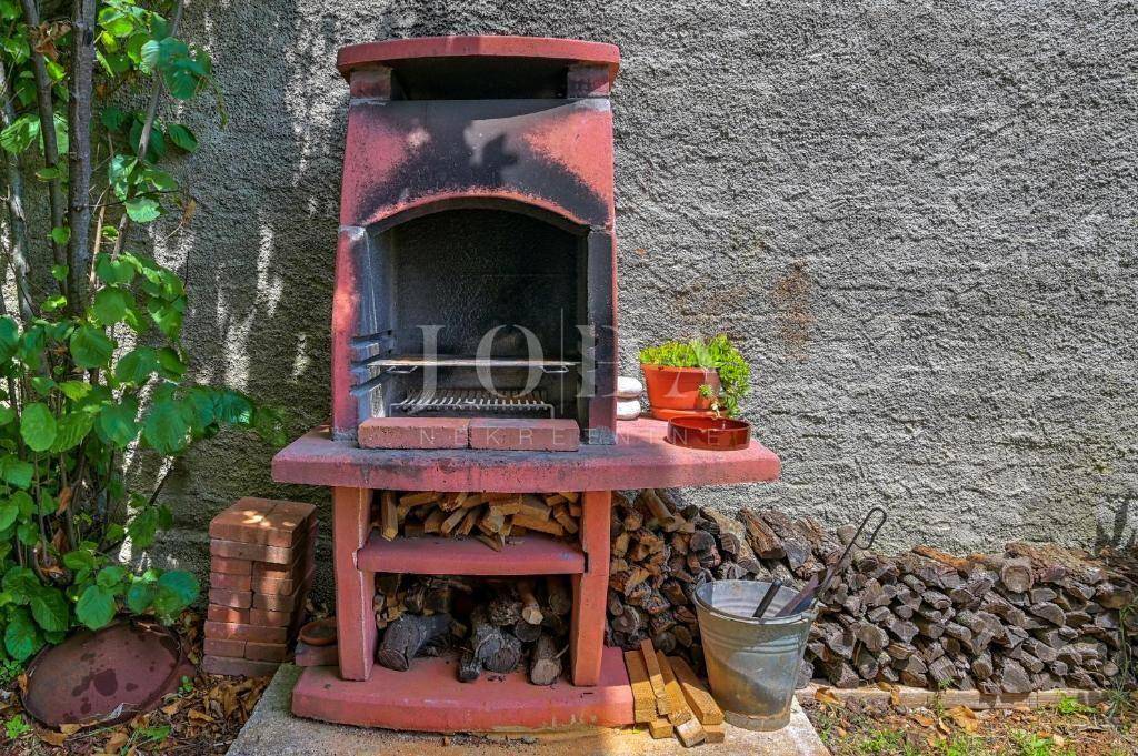 Okućnica od 615 četvornih metara ograđena je i uređena, te nudi brojne sadržaje za opuštanje i druženje, uključujući bazen sa sunčalištem, vrt s roštiljem i prostor za dječju igru.