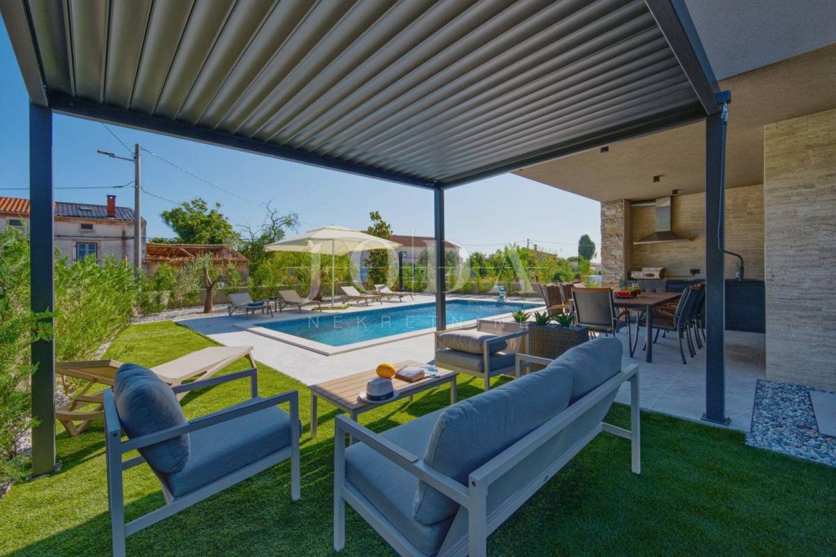 Na uređenoj okućnici nalazi se bazen sa vodopadom, sunčalište, te ljetna kuhinja.