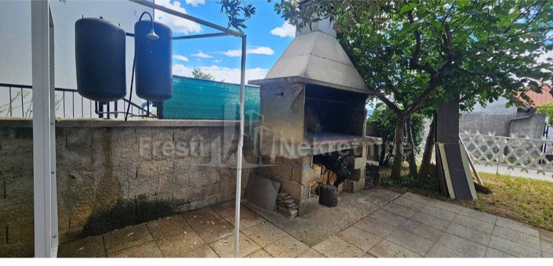 Kuća je sa tri strane okružena velikom, uređenom okućnicom s mnoštvom mediteranskog bilja i debelom hladovinom, što jamči ugodan boravak i u najtoplijim ljetnim mjesecima. Na okućnici se također nalazi roštilj i vanjski tuš, idealni za opuštanje i uživanje na otvorenom. S obzirom na veličinu okućnice i ulaze s različitih strana, svaka jedinica ima mogućnost korištenja dijela okućnice i stvaranja intimnog kutka za boravak vani.