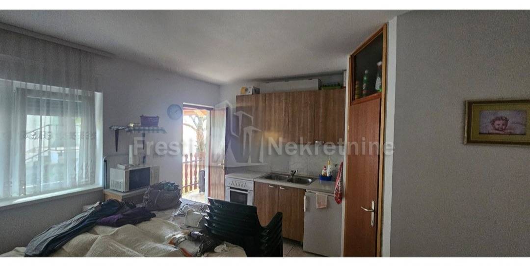 Sastoji se od:• Suteren: veća konoba i 2 manja studio apartmana• Prizemlje: 4 studio apartmana• Potkrovlje: 2 veće stambene jedinice u roch bau izvedbi što vlasniku pruža jedinstvenu priliku da ih uredi po vlastitim željama i potrebama.