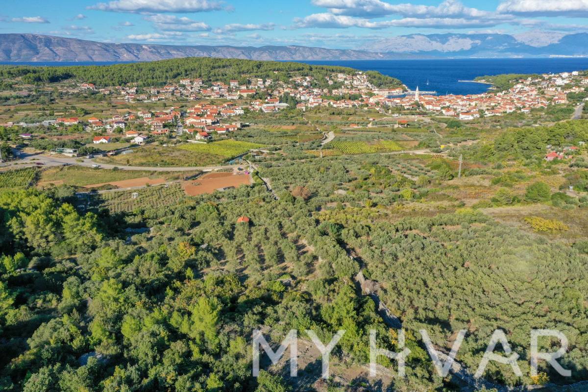 Prostire se na 4300 m², ova prekrasna poljoprivredna parcela u blizini Jelse dom je oko 80 stabala maslina srednje do zrele dobi, koja svake sezone proizvode otprilike 180 litara vrhunskog maslinovog ulja. Zemljište se nalazi na povišenom položaju s prekrasnim pogledom na more, što vam omogućuje da uživate u pogledu na Jadransko more dok berete masline - pravi mediteranski doživljaj.