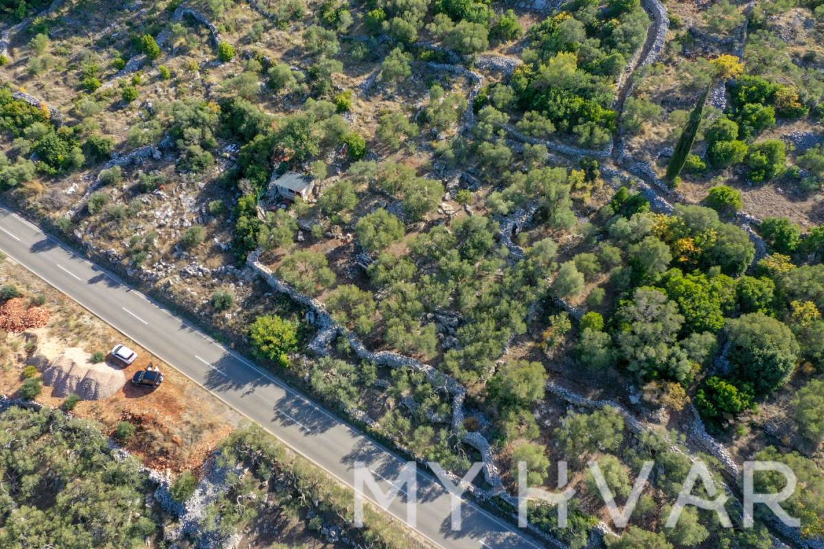 Na prodaju je maslinik ukupne površine 1630 m² smješten uz glavnu cestu D116 u blizini Starog Grada na otoku Hvaru. Parcela je razdijeljena cestom, što omogućuje lak pristup autom. Na masliniku je posađeno 25 stabala maslina različitih sorti – oblica, leccino i pendolino, pa uz tradicionalnu domaću oblicu možete uživati i u modernim, europskim sortama s visokim prinosom. Lokacija je izuzetno pristupačna, odmah uz prometnicu koja vodi prema trajektnom pristaništu i Starom Gradu, čime je osiguran brz dolazak s kopna i iz centra mjesta.